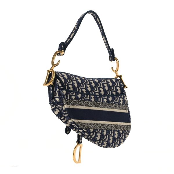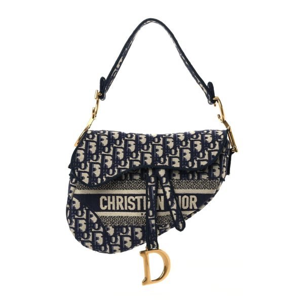 CHRISTIAN DIOR Oblique Embroidered Saddle Bag Blue