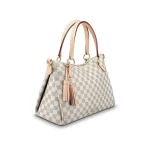 Casual yet elegant Lymington zipped tote in fresh Damier Azur is the perfect beach to city companion.The natural cowhide handles tassels and trim acquire an authentic patina over time enhancing the allure of this practical generously sized model.