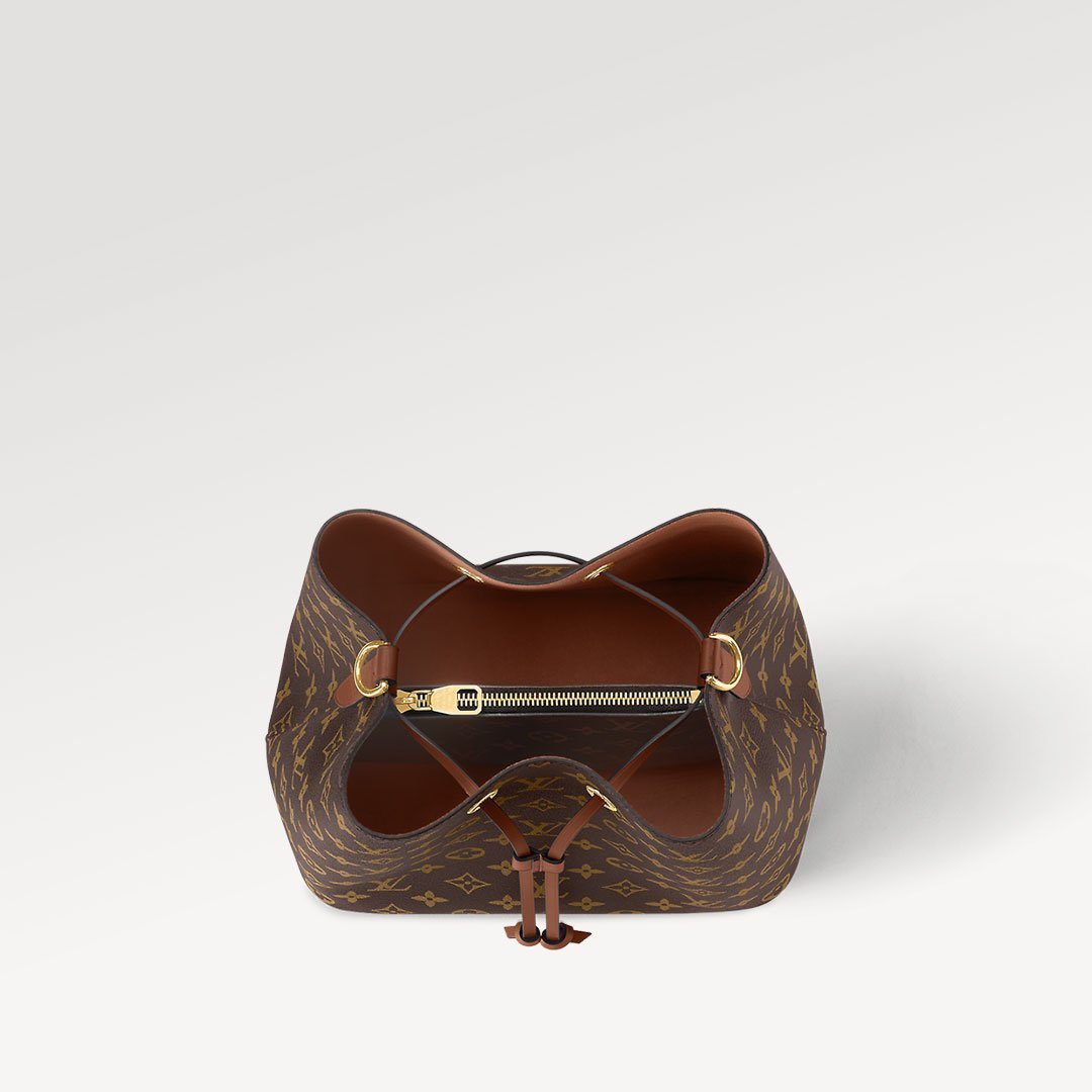 A true House icon the NéoNoé bucket bag revisits a 1932 design by Gaston-Louis Vuitton. The original was created to transport bottles of Champagne in style; this modern version in Monogram canvas features a sleek shape colorful leather trim and a matching bonded lining. The adjustable smart strap can be slung over the shoulder or lengthened for a trendy cross-body carry.