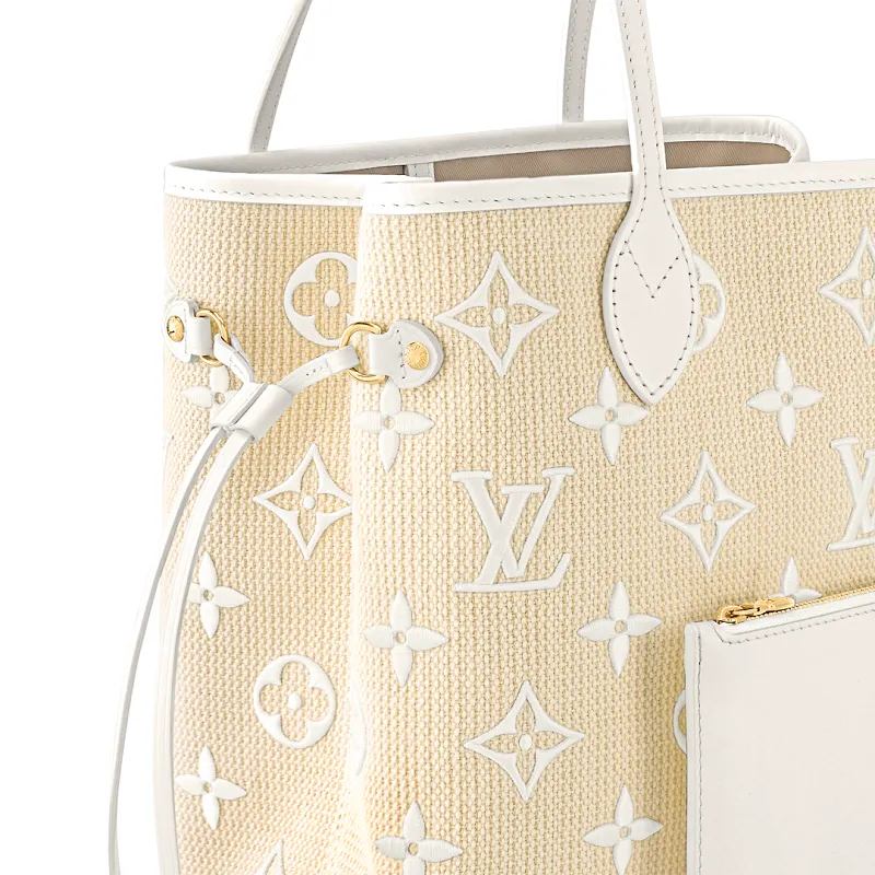 The season’s Neverfull MM tote captures the spirit of carefree seaside vacations. Part of the new By the Pool capsule it is made from supple raffia-like cotton material embellished with a crafted summer-ready version of the Monogram pattern. Easy to care for easy to carry this roomy Neverfull is the perfect daily companion for a relaxed sunny holiday.