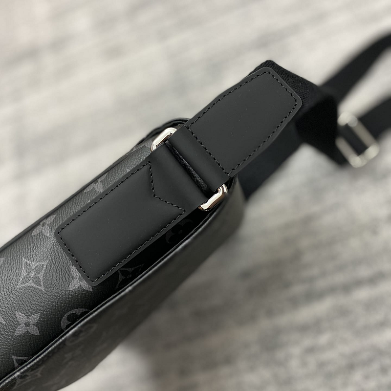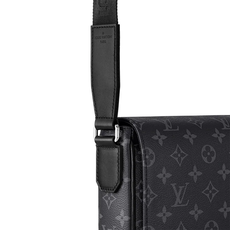 Made from masculine Monogram Eclipse canvas the new District PM is a messenger-style bag with a contemporary design. An outside back zipped pocket gives quick access to essentials while the adjustable shoulder strap ensures comfortable carry. The strap is signed ‘Louis Vuitton’ and the lower front corner features black metallic LV initials.
