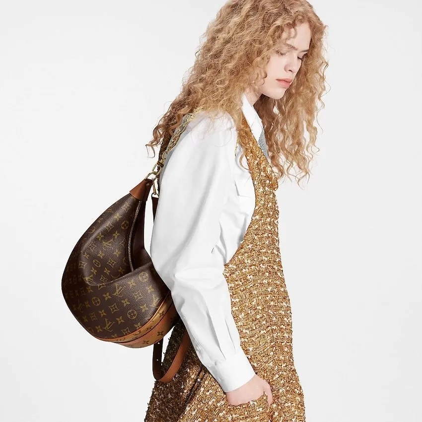 A supple and roomy bag the Loop Hobo is made from a mix of Monogram and Monogram Reverse coated canvas. Its on-trend half-moon shape is emphasized by the leather corners. A removable chain and removable and adjustable leather strap enable multiple carrying options.