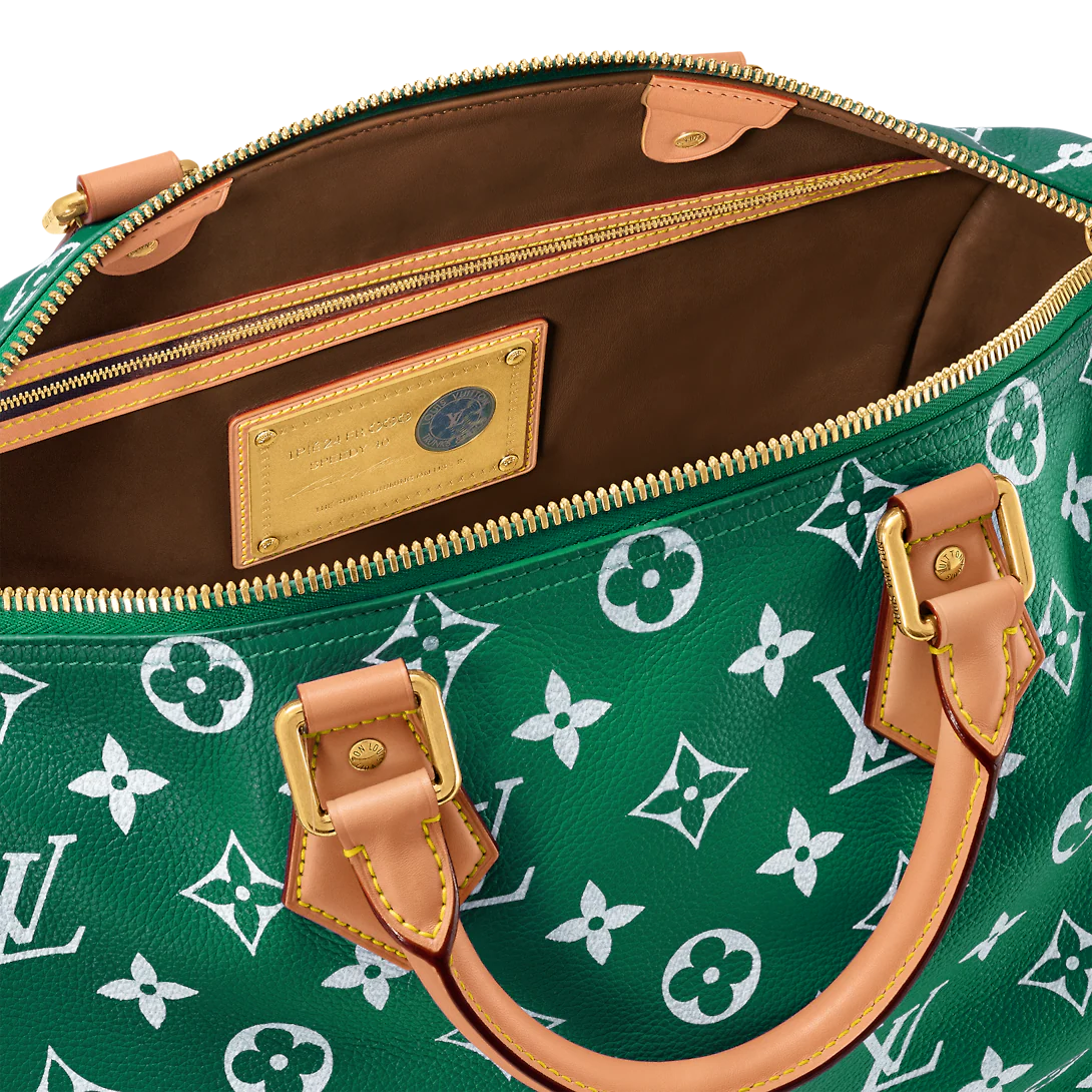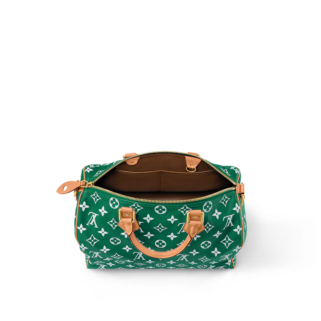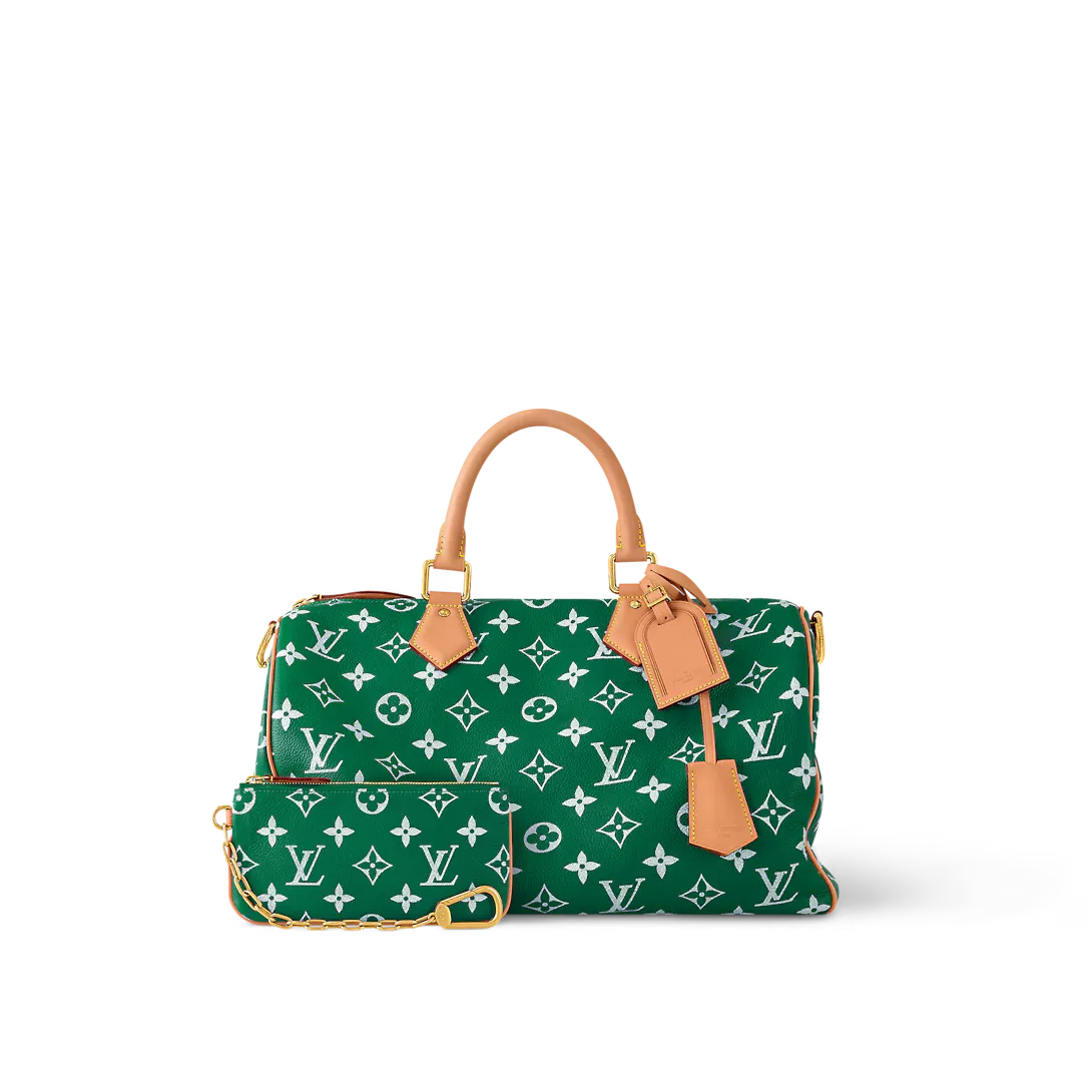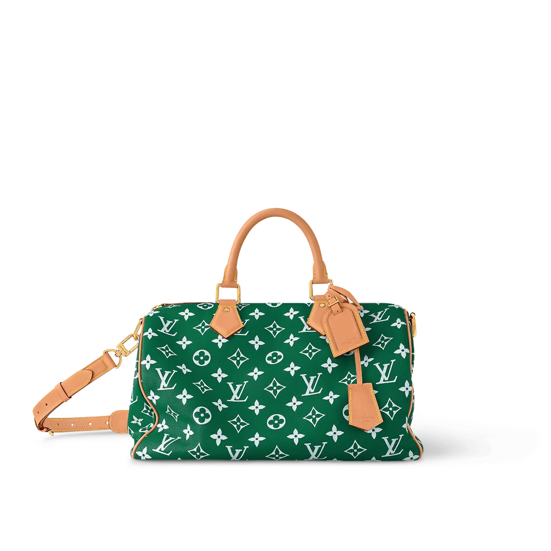 The Speedy P9 Bandoulière 40 bag is made from extra-soft calfskin in a colorway inspired by precious stones. This less structured version of the iconic Speedy is body-friendly and very comfortable to carry. As part of Pharrell Williams’ cowboy-influenced collection for Fall-Winter 2024 the handle mounts feature embossed horses.