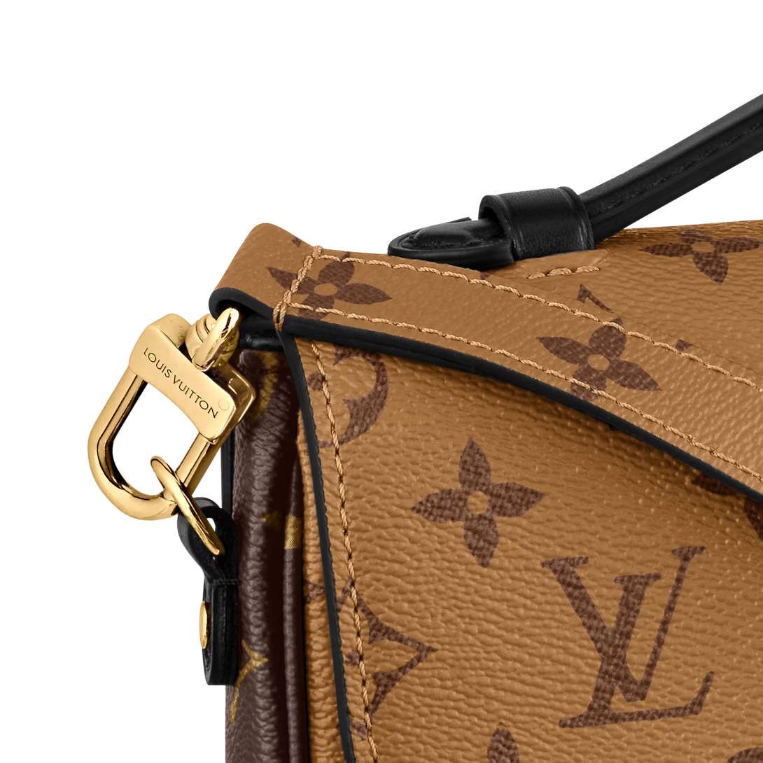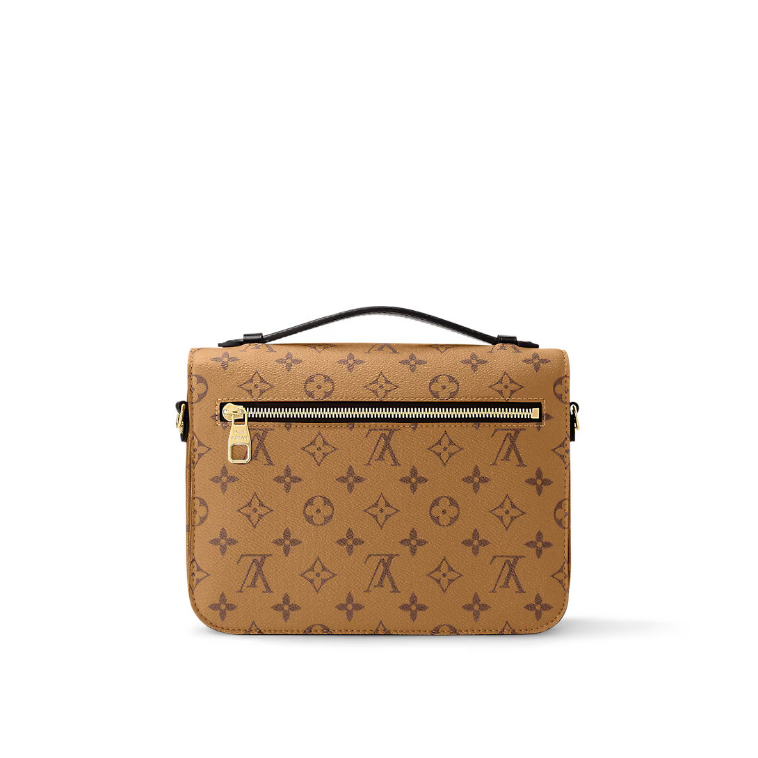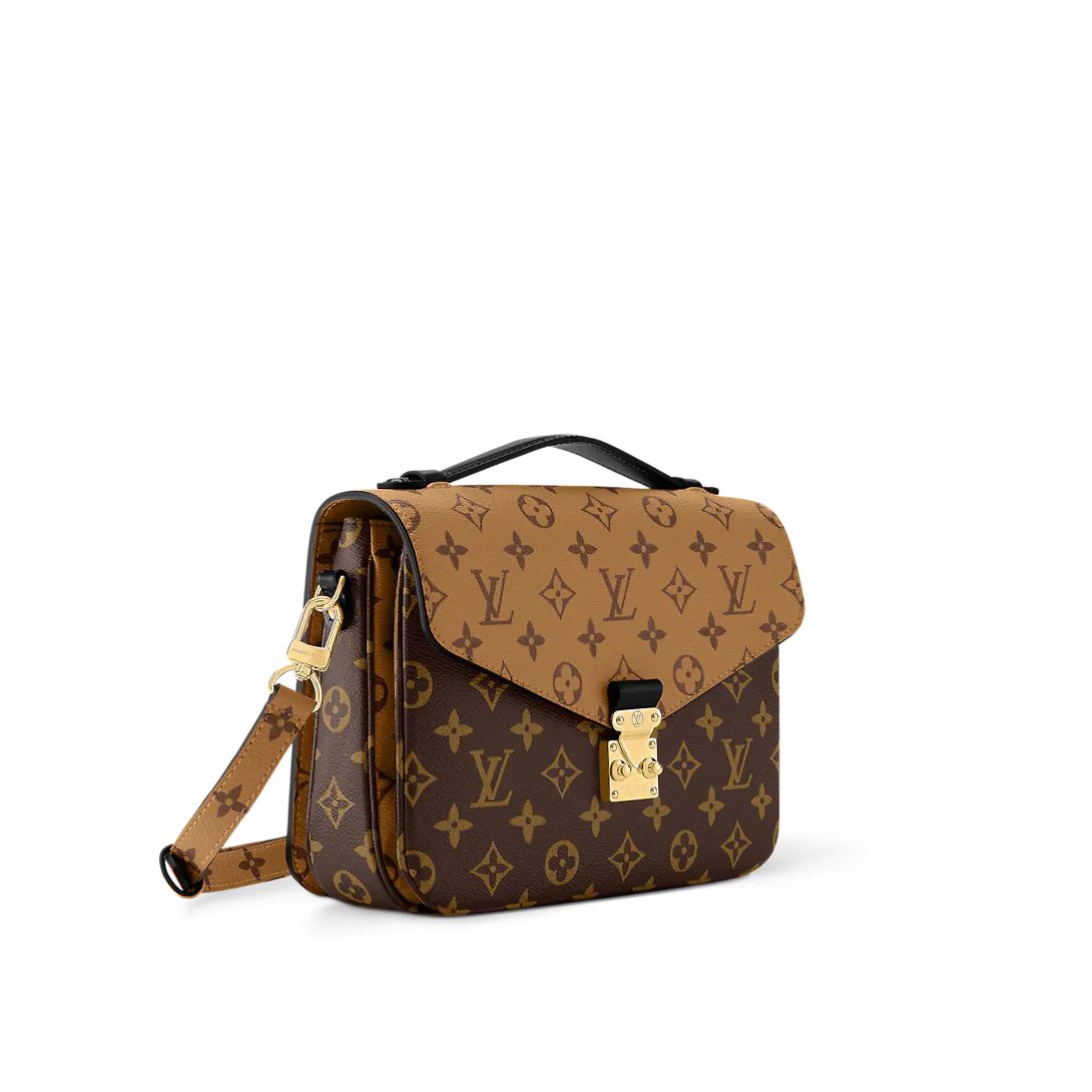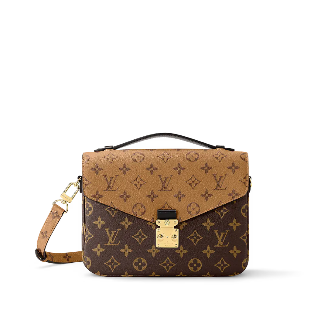 With its distinctive satchel silhouette the Pochette Métis bag has become an object of fashion desire. This compact go-everywhere model in trendy Monogram Reverse canvas features a signature S-lock closure with a gleaming gold-tone finish. Versatile and surprisingly roomy it is fitted with a chic top handle and a long removable strap for shoulder or cross-body wear.