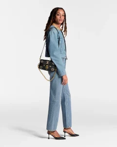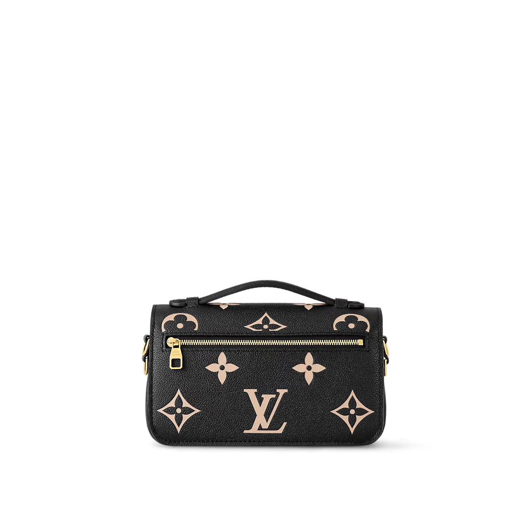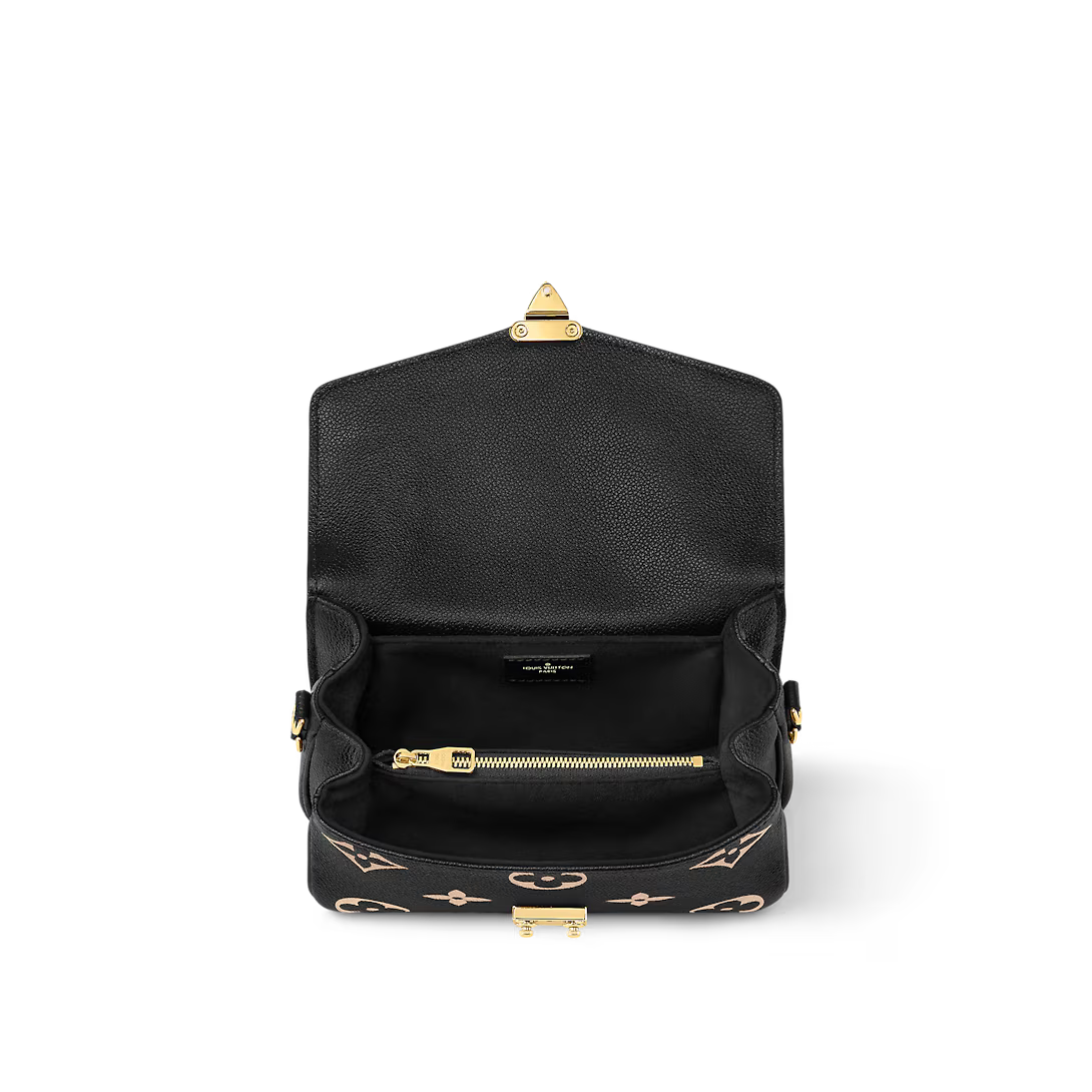 Crafted from embossed Monogram Empreinte leather the bicolor East-West edition of the Pochette Métis sports an oversized version of the signature motif. At once sophisticated and squarely on-trend this versatile day-to-evening bag can be worn on the shoulder with its detachable golden chain cross-body with the adjustable smart strap or carried by hand thanks to the chic top handle.