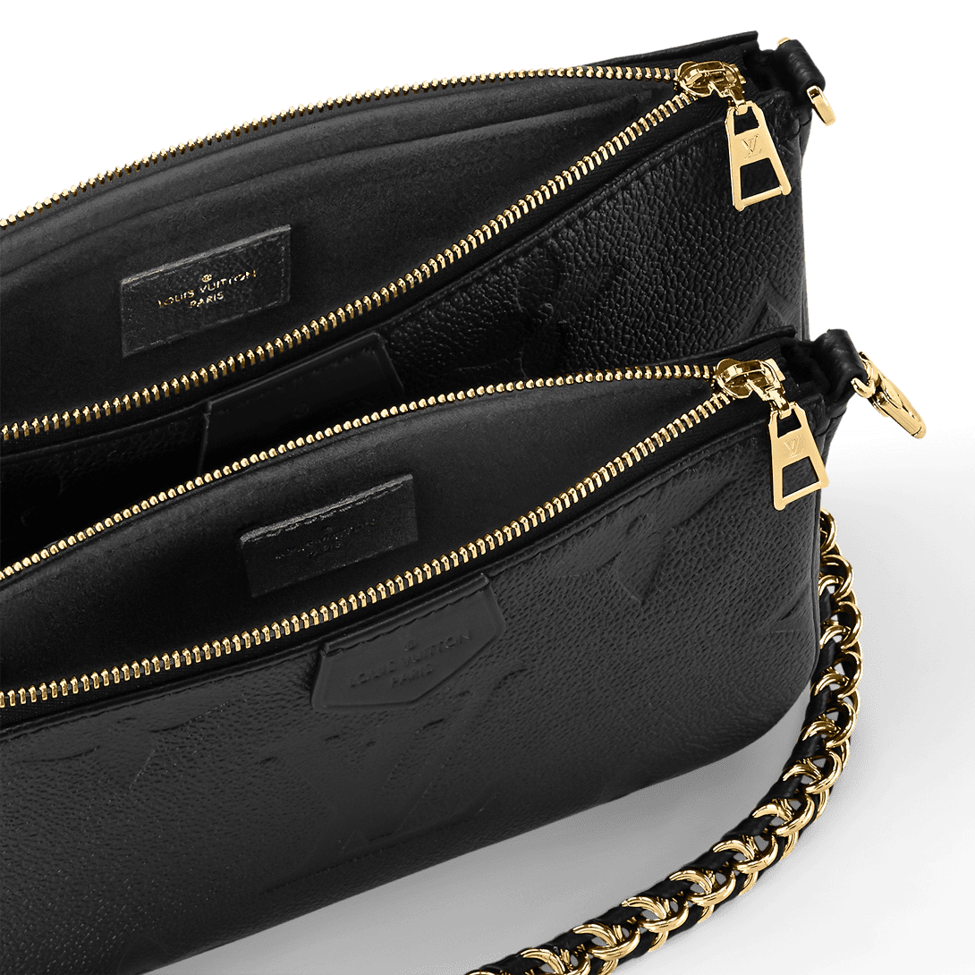 The Multi Pochette Accessoires cross-body bag in Monogram Empreinte leather allies form with function. Every part of this two-in-one bag is removable: the two pouches the gold chain and the leather strap. The oversized Monogram embossed on the front contrasts perfectly with the classic Monogram pattern on the side gussets.