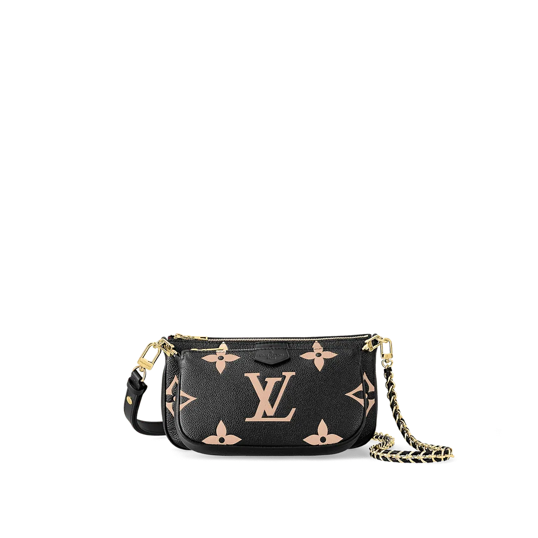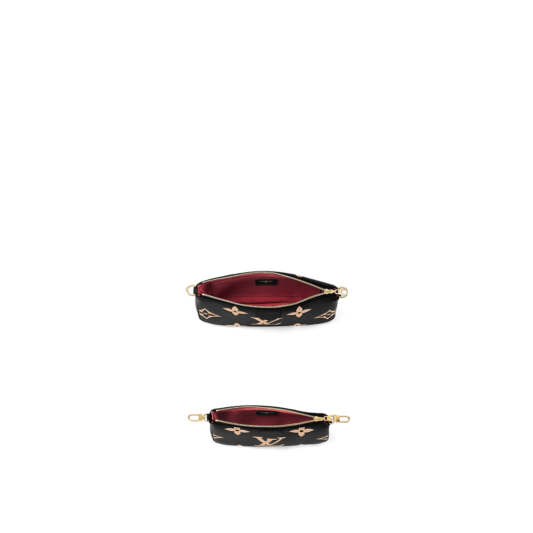 The Multi Pochette Accessoires cross-body bag takes on a striking aspect in embossed black Monogram Empreinte leather overprinted with the Monogram motif in a cream color. Just the right size to carry a woman’s essentials this two-in-one bag keeps things organized with its removable pouches. It’s comfortable to wear thanks to its suppleness and light weight.