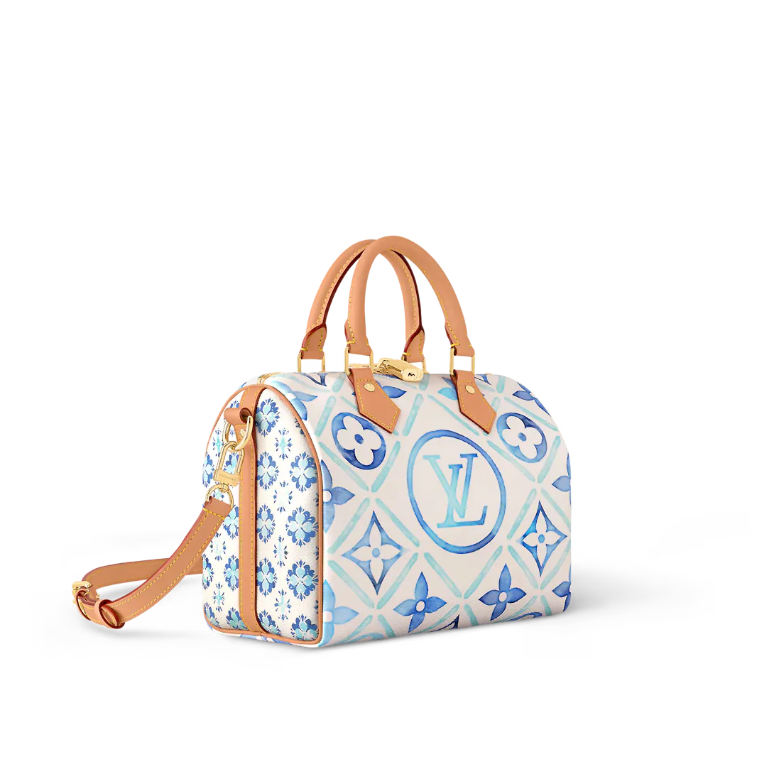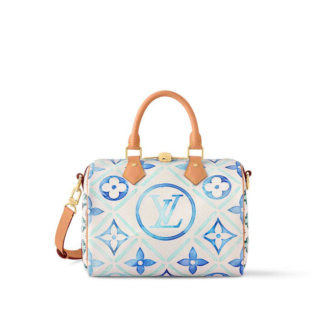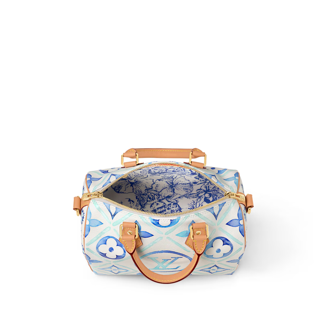 Inspired by the Speedy travel bags of the 1930s this Speedy Bandoulière 25 bag features a classic silhouette in Monogram Tiles canvas for a fresh summer feel. The prints on the bag and lining evoke the beautiful tiles of Lisbon and the central LV Circle logo adds a brand touch. The