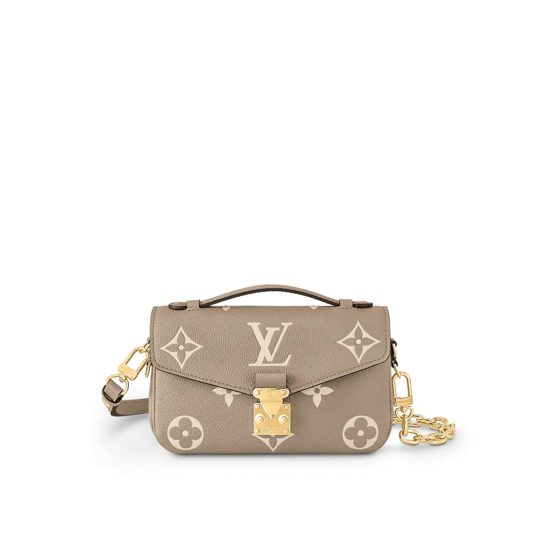 Crafted from Monogram Empreinte leather with its embossed Monogram pattern the Pochette Metis East West handbag blends classic Louis Vuitton design codes with contemporary details. The S-lock and top handle evoke the House’s historic trunks while the compact proportions and removable chain perfect for short shoulder carry bring an up-to-the minute feel.