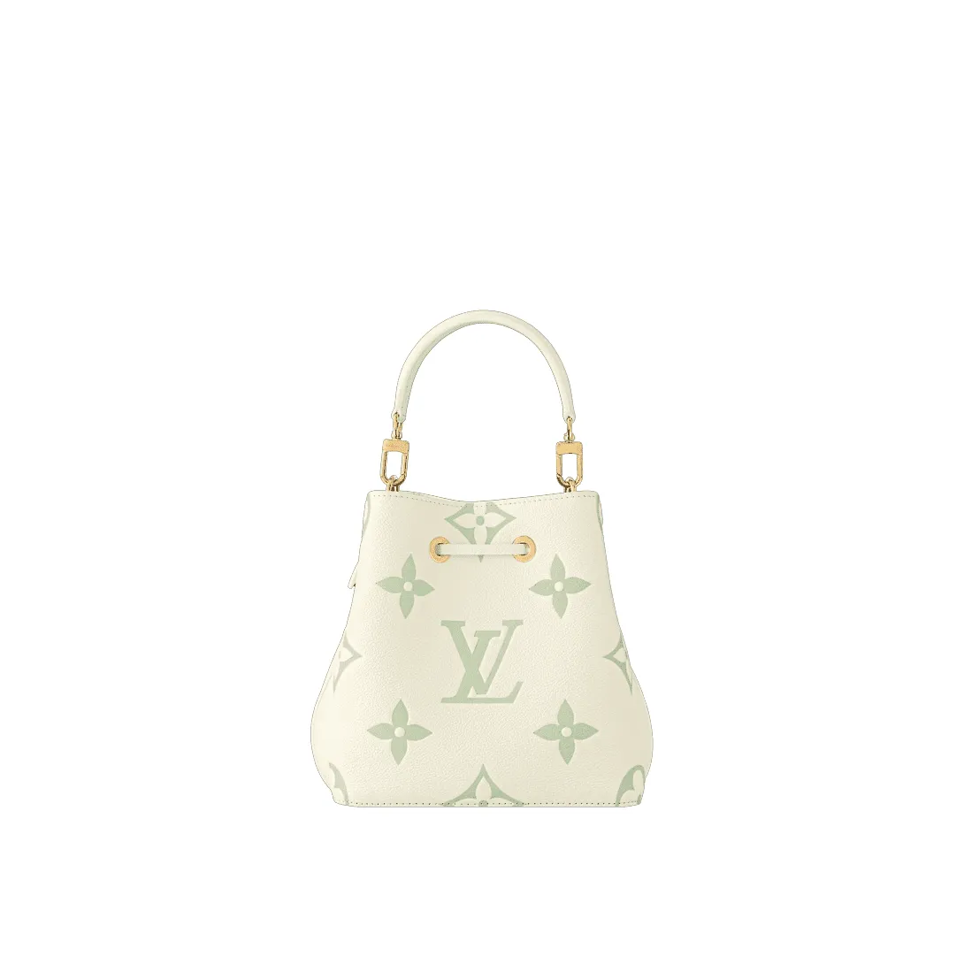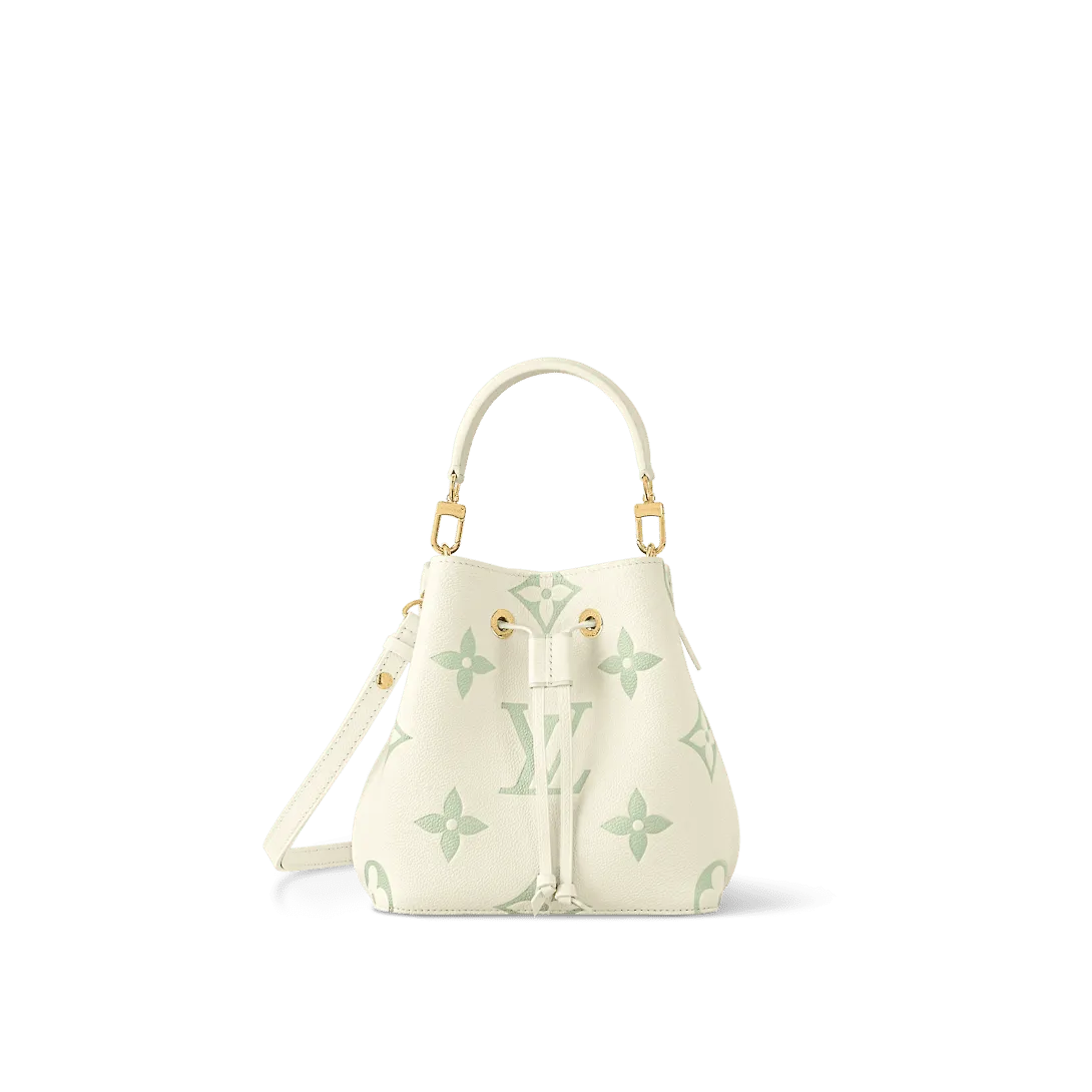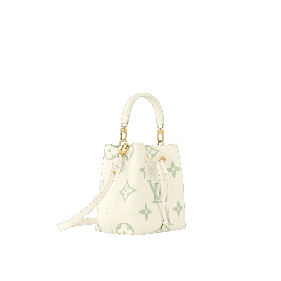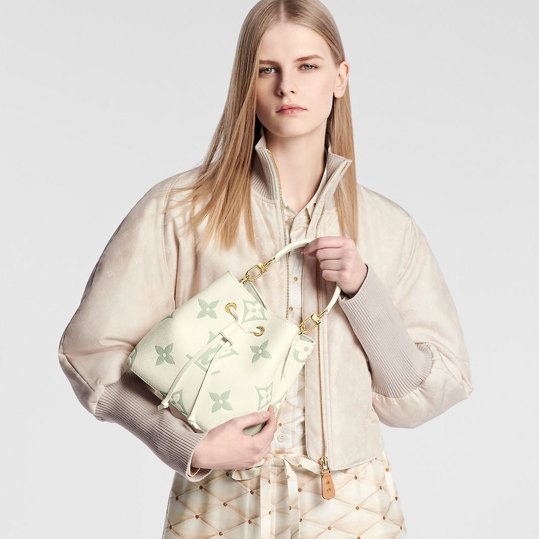 Inspired by colors of early spring the pastel colorway of the Monogram Empreinte leather with the LVs and Monogram Blossoms embossed and printed onto the cowhide bring a delicate feel to this Néonoé BB bucket bag. The interior features matching lining and a central pocket that closes with a press stud.