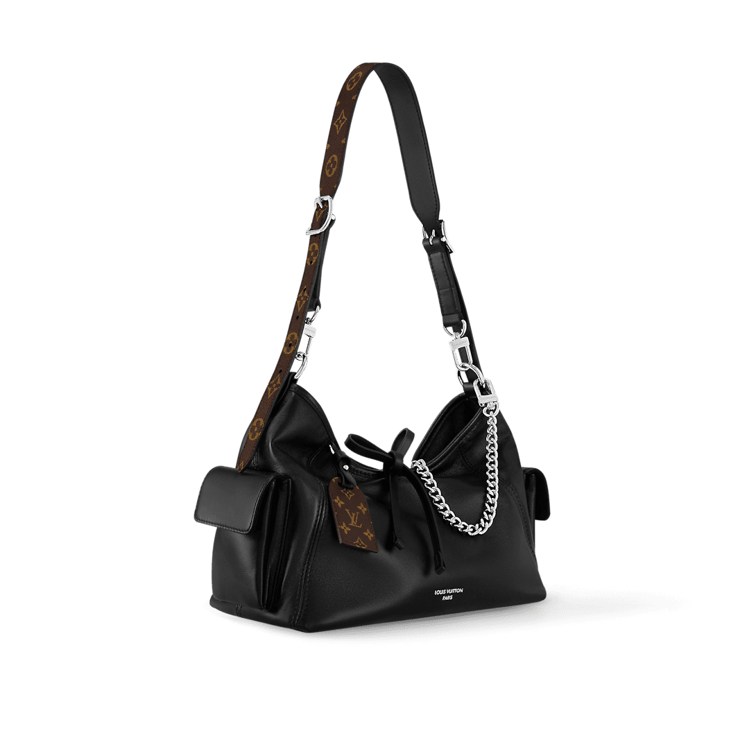 With its dark allure and slouchy silhouette the CarryAll Cargo PM handbag is crafted from ultra-soft lambskin with a cool slightly “rumpled” aspect and is accented with polished palladium-finish hardware. This day-to-evening piece offers great styling potential thanks to a removable strap and a chic detachable chain.
