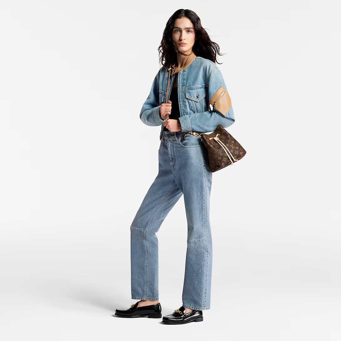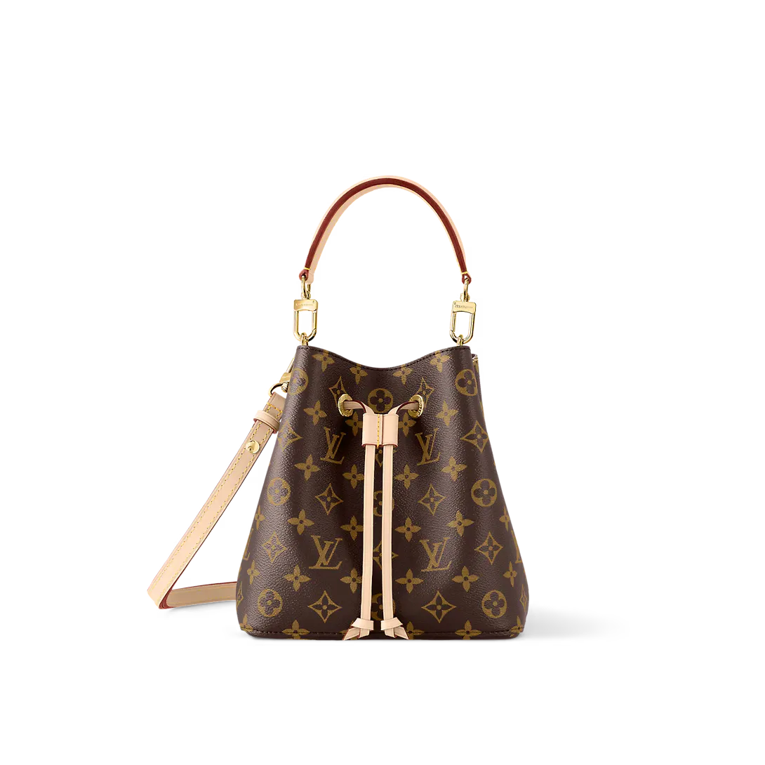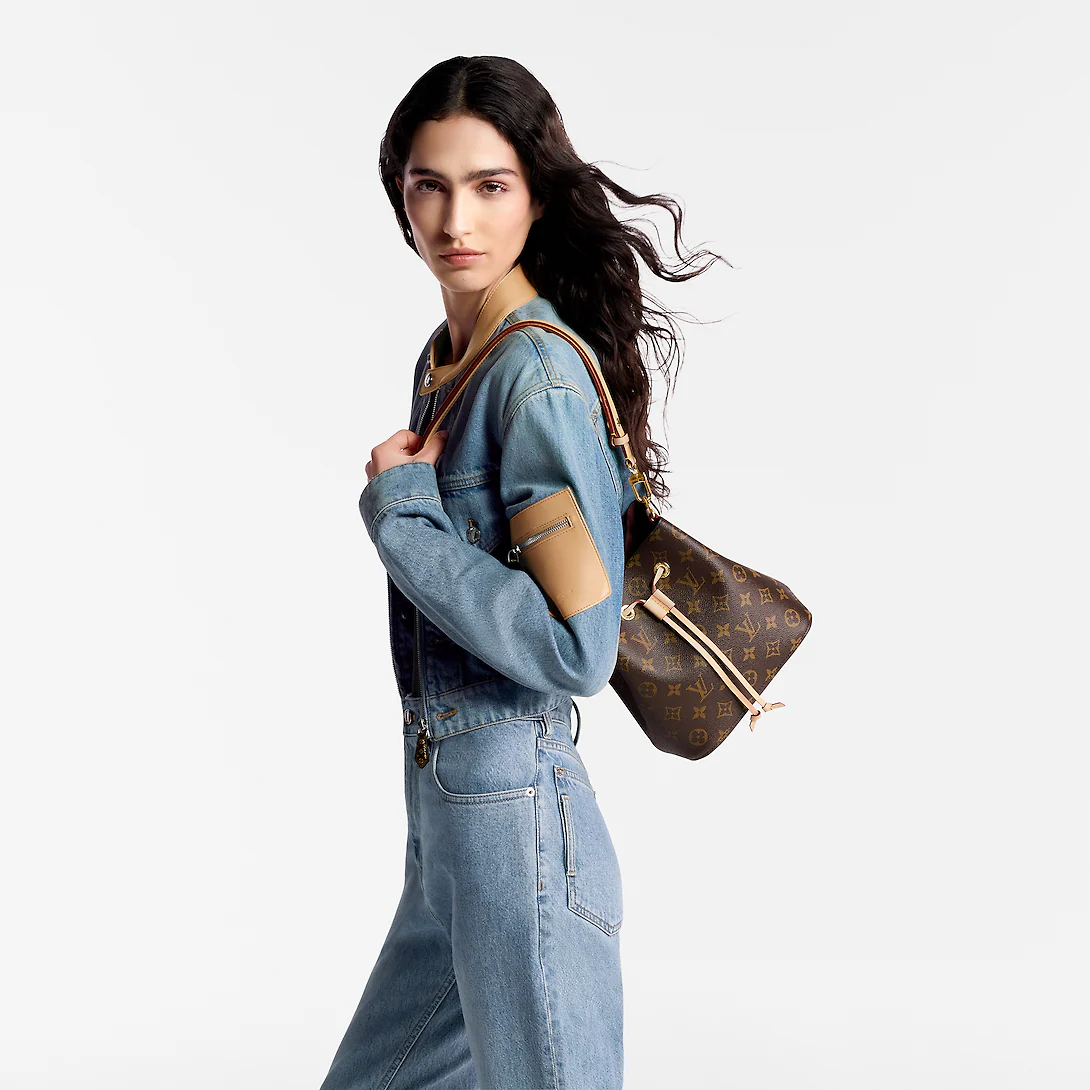 The NéoNoé BB in Monogram canvas with natural leather trim is a smaller interpretation of the House’s iconic NéoNoé bucket bag. Spacious enough to hold essentials such as keys Airpods and an iPhone it features a leather drawstring to close the bag and keep belongings secure. A removable handle and detachable adjustable strap offer multiple carry options.