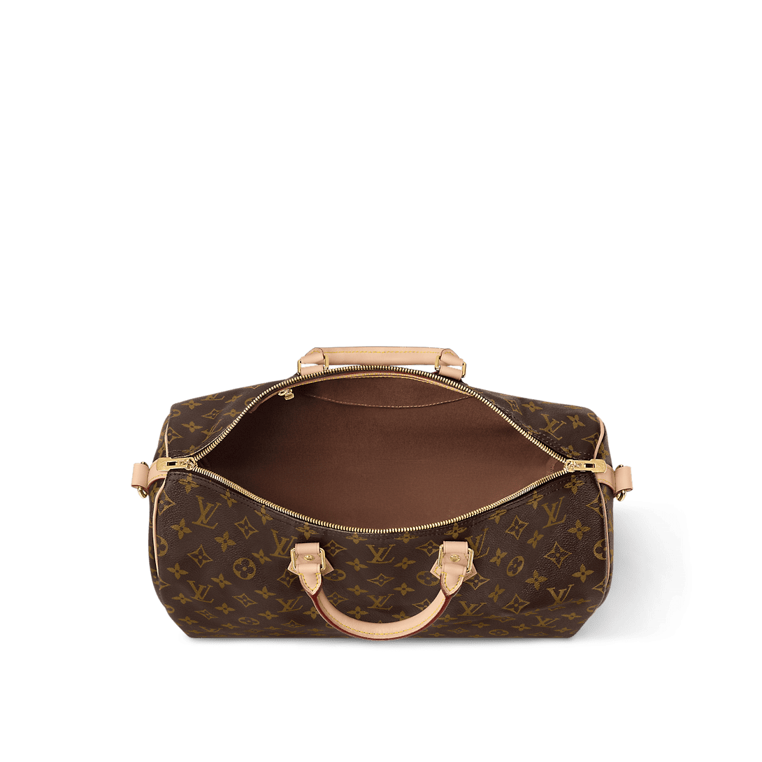 A timeless model that is always on-trend the Speedy Bandoulière 40 in signature Monogram canvas is an ideal handbag for travel roomy enough to hold all the essentials and more. Originally created in the 1930s every feature of the Speedy’s design is iconic from its unmistakable silhouette to the rolled leather handles engraved padlock and detachable strap.