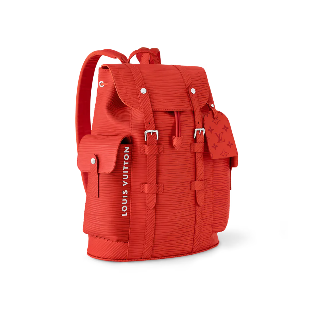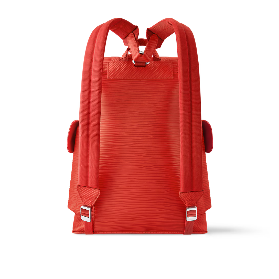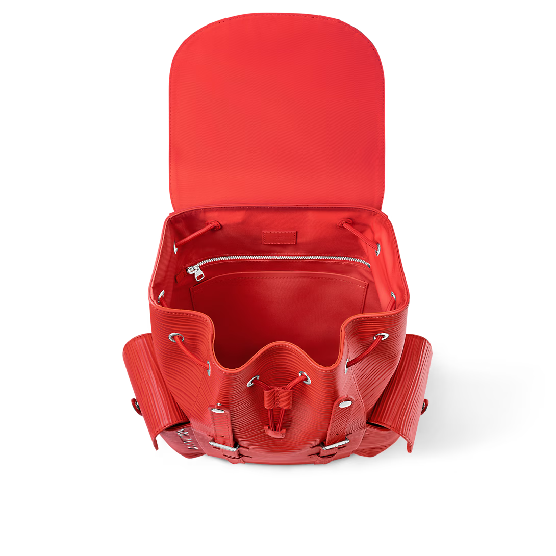 The House’s classic backpack the Christopher MM looks stunning in bright-red Epi XL grained leather. The textured embossing is larger than on regular Epi and enhances the leather’s strength making it less prone to wear and tear. This backpack is signed “Louis Vuitton” on the two side pocket.