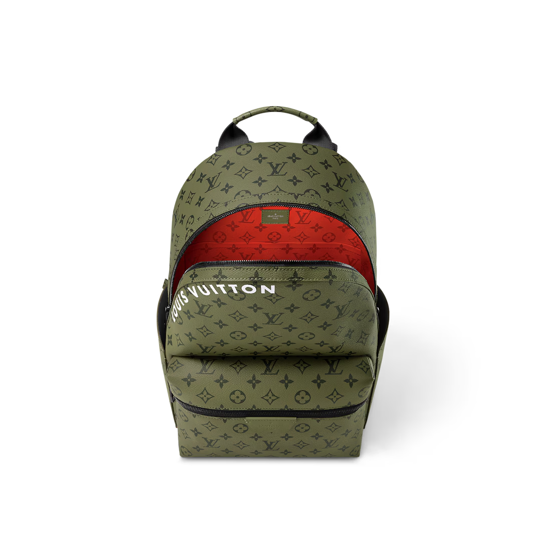 The Discovery Backpack PM is made from Monogram coated canvas in an earthy colorway. It’s signed “Louis Vuitton” on the front in bold white type and features a removable name tag. The roomy front pocket two inside pockets and inside iPad pocket make it a great everyday bag.