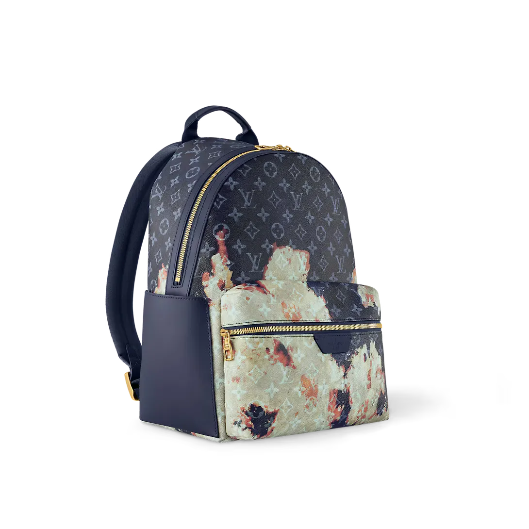 Inspired by the bonfire theme for Spring-Summer 2024 the Monogram Bleach look gives the Discovery backpack an infusion of edgy elegance. Dark blue Monogram canvas the color of a night sky is combined with lighter shades in a pattern that recalls the ever-changing shapes of flickering flames. And the distinctive aged gold finish of the metal pieces creates an eye-catching contrast.