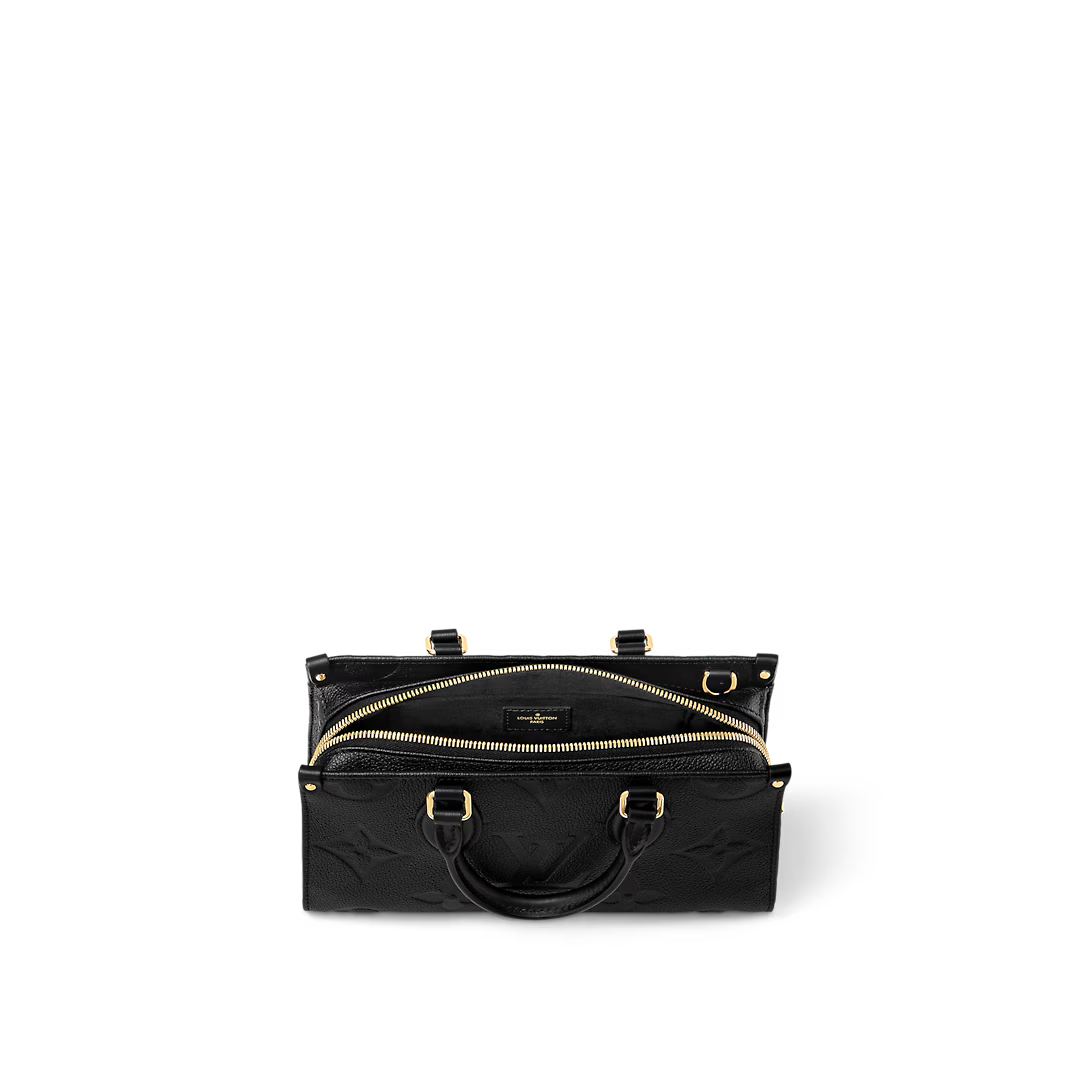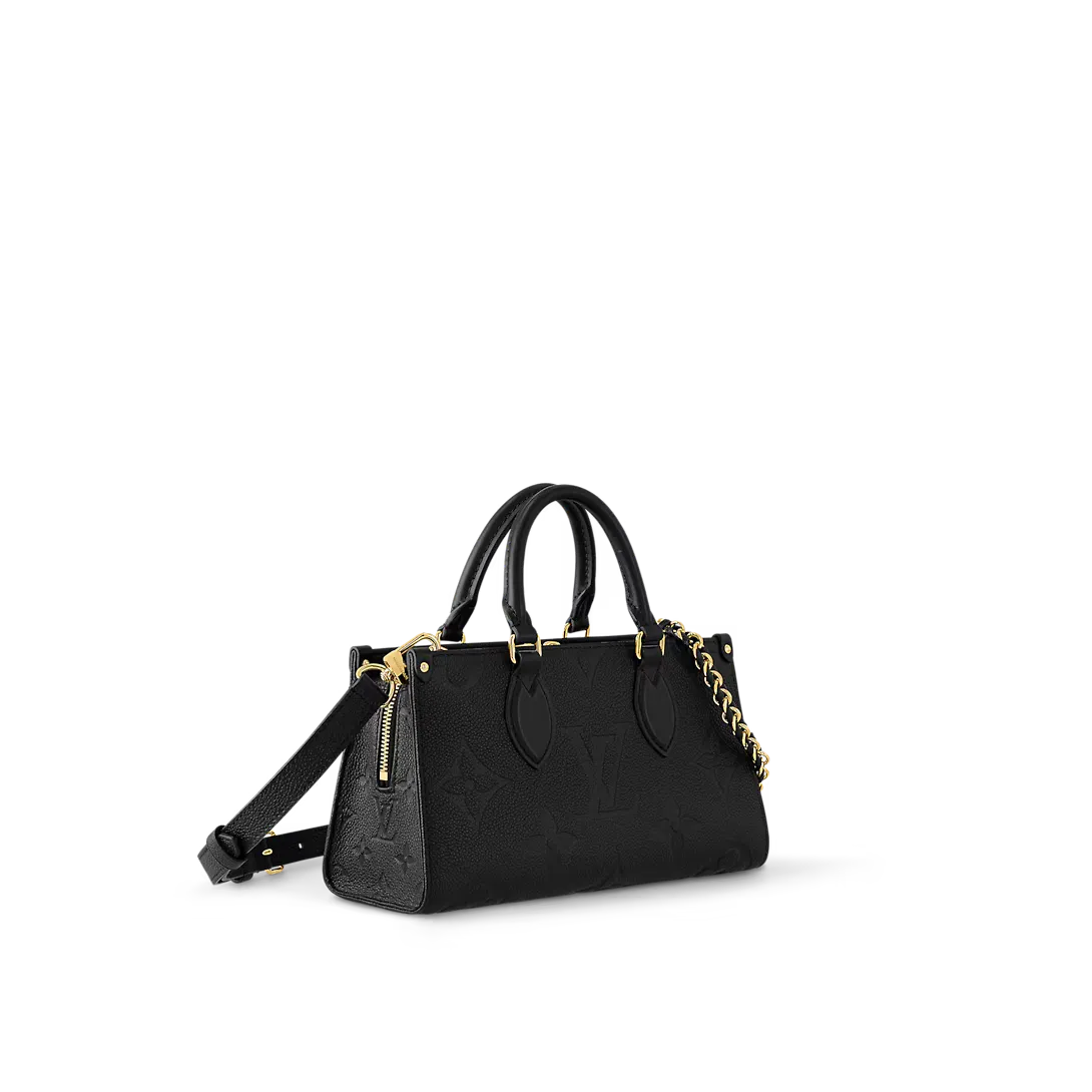 Introducing the OnTheGo East West tote interpreted in a beautifully proportioned east-west silhouette. Made from Monogram Empreinte leather embossed with a tonal Giant Monogram motif this compact model boasts a well-organized interior for daily essentials. The bag lends itself to a variety of carry styles thanks to its two articulated top handles and a removable chain-and-leather strap.