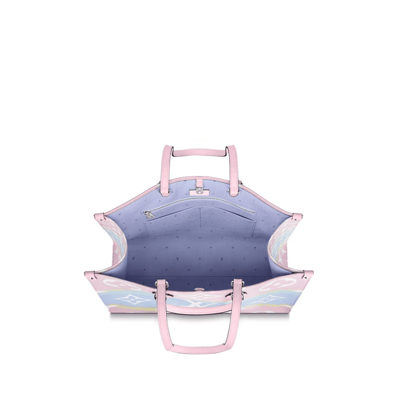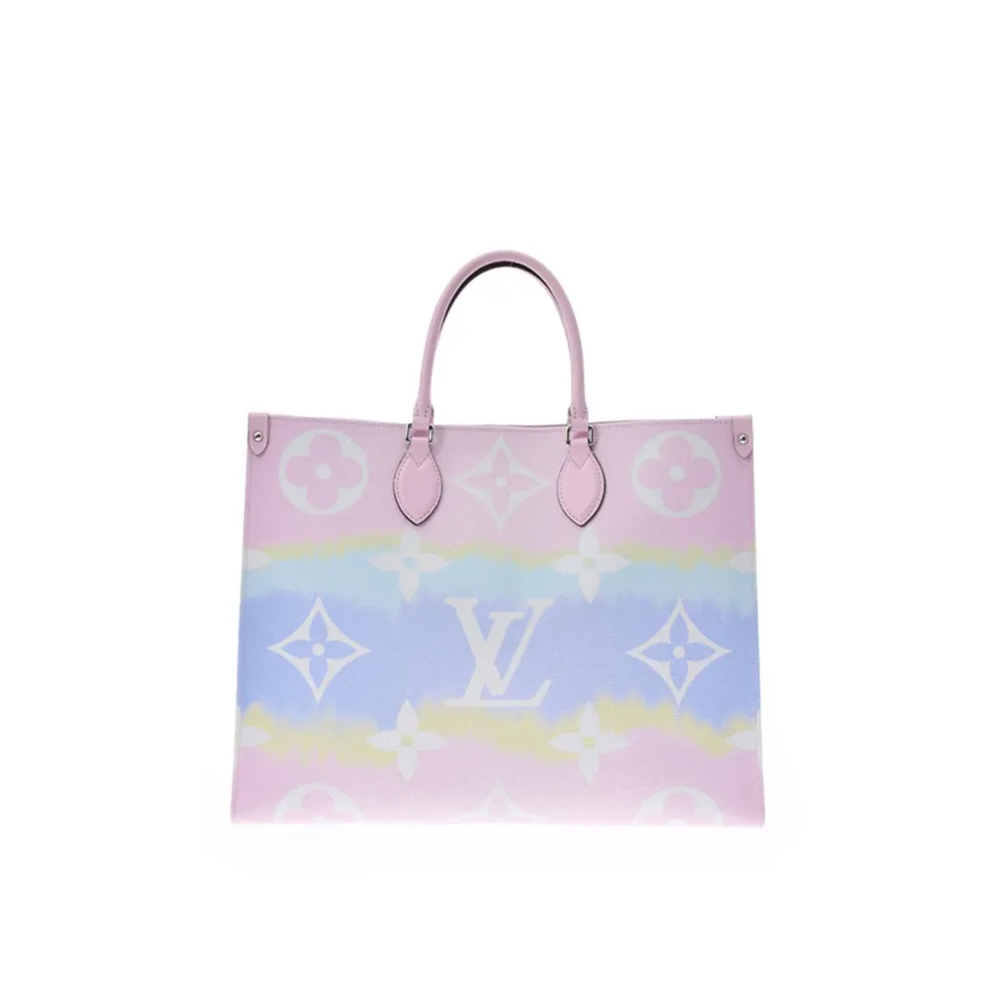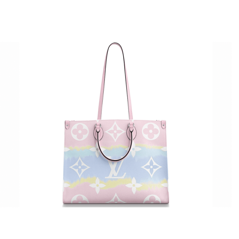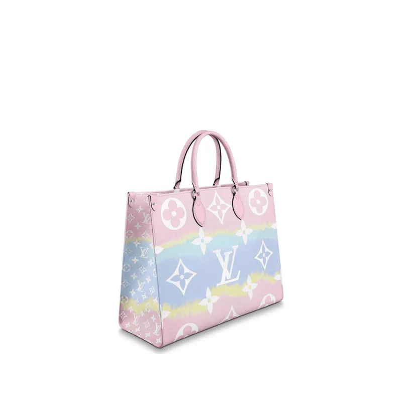 Fashioned from Monogram Giant canvas the Onthego tote bag is as striking as it is practical. Onthego large Tote bag follows the traditional Japanese dyeing process knotting folding and dyeing the fabric showing the fresh beach interest of the Louis Vuitton Escale series in the summer of 2020. With its generous capacity shoulder straps and iconic Toron top handles this versatile GM model is an ideal bag for everyday wear.