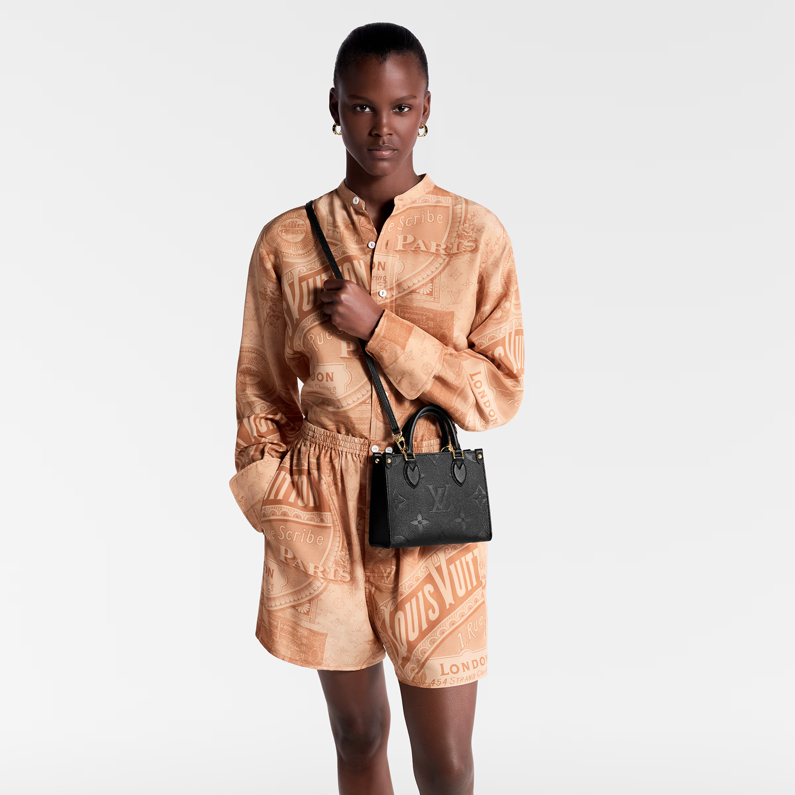 The OnTheGo BB is an on-trend micro-bag fashioned from Monogram Empreinte leather with Monogram embossing. This tiny tote boasts all details of the full-size model – including the distinctive handle mounts and riveted leather tabs on the corners – and can fit a smartphone and compact wallet. A removable and adjustable strap enables shoulder carry.