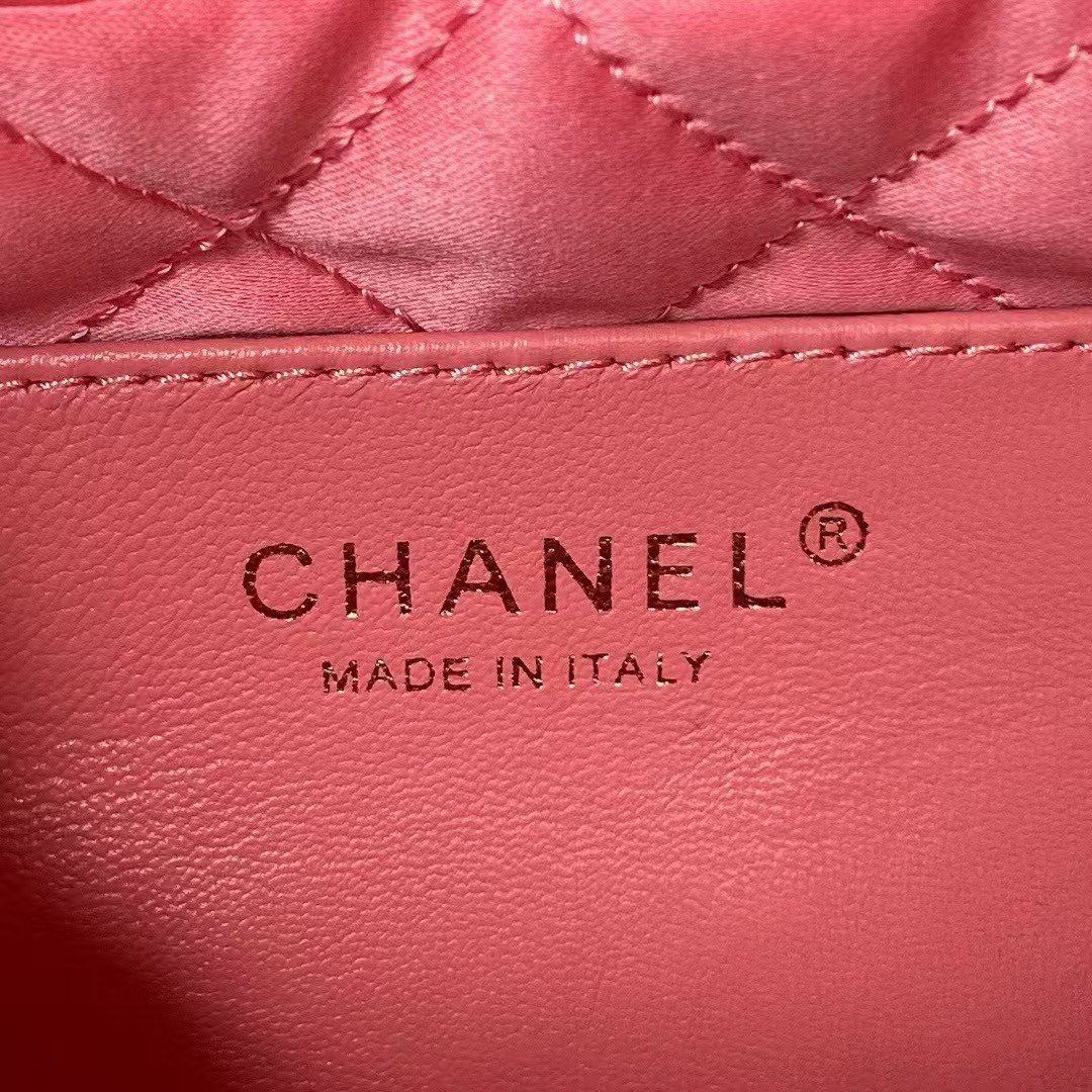 Chanel 22 AS3980 Mini Tote Shiny Calfskin & Gold-Tone Metal Dark Pink