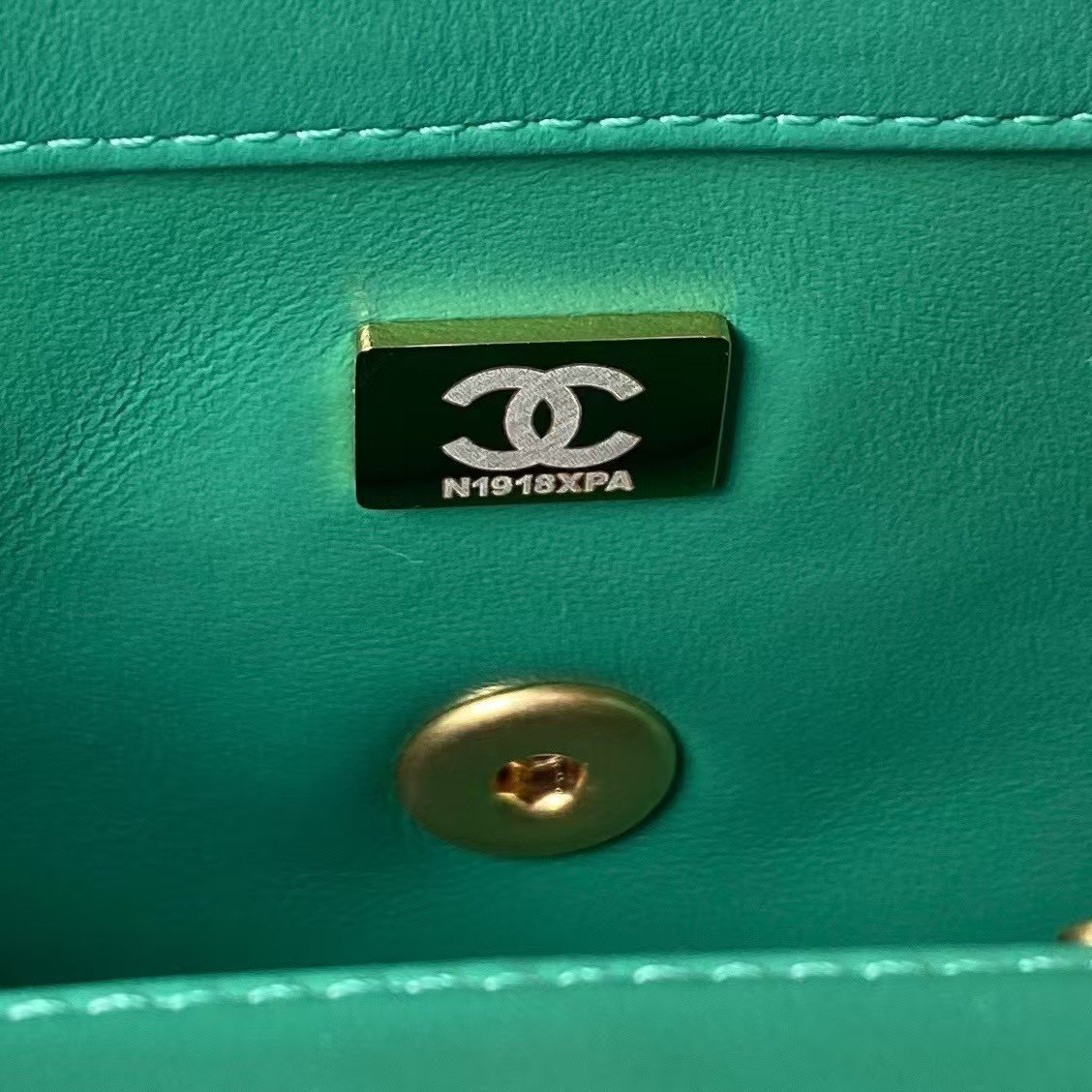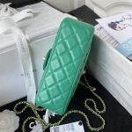 Chanel 23K AS1787 Mini Pearl Embossed Rectangular Flap Bag Lambskin Brushed Metal Hardware Green