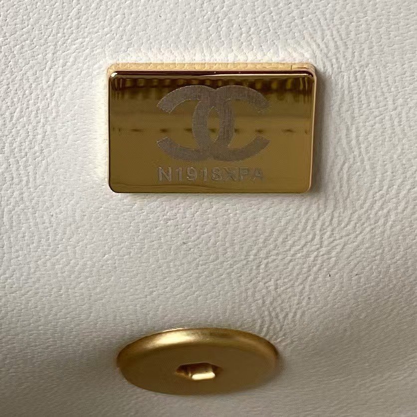 Chanel 23S AS4041 Mini Camellia Embossed Rectangular Flap Bag Antique Gold Hardware White