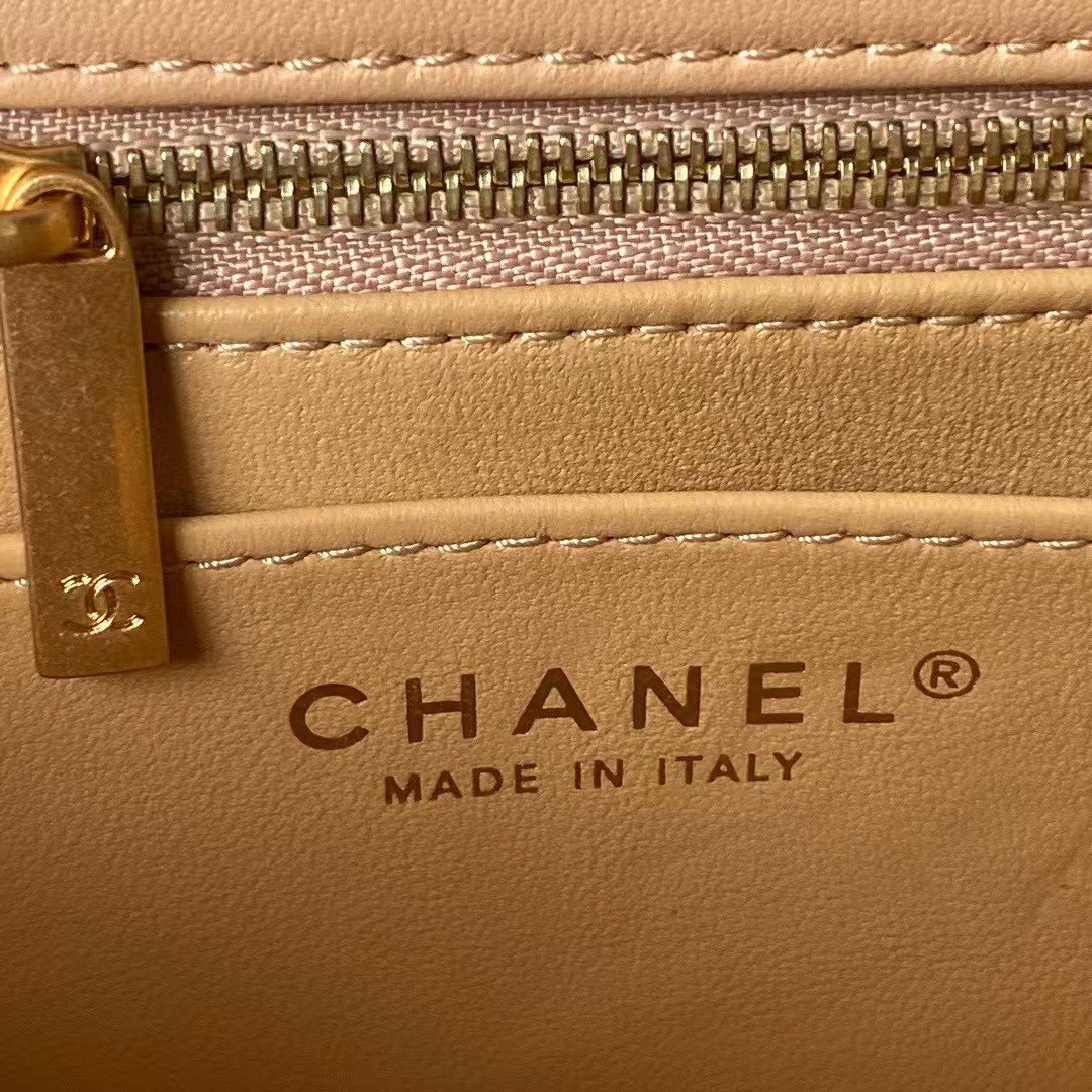 Chanel 23S AS4041 Mini Camellia Embossed Rectangular Flap Bag Antique Gold Metal Hardware Apricot
