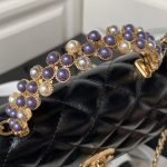 New Chanel 24p Top Handle Woc Pearl Handle Gold Embossed Double C Button Shiny Wrinkled Lambskin Black