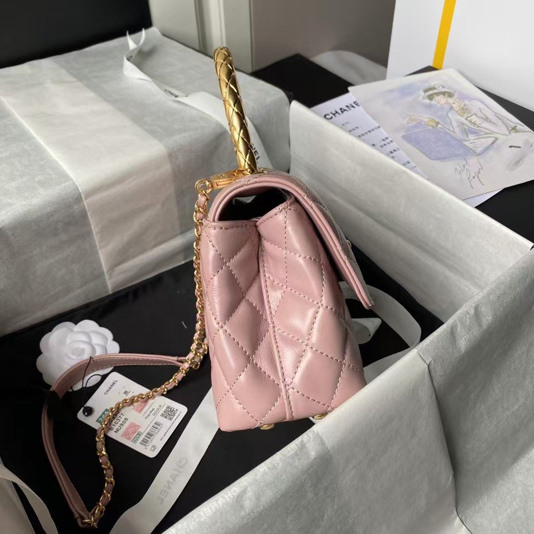 Chanel A92990 Small Flap Bag With Top Handle Shiny Calfskin Pink