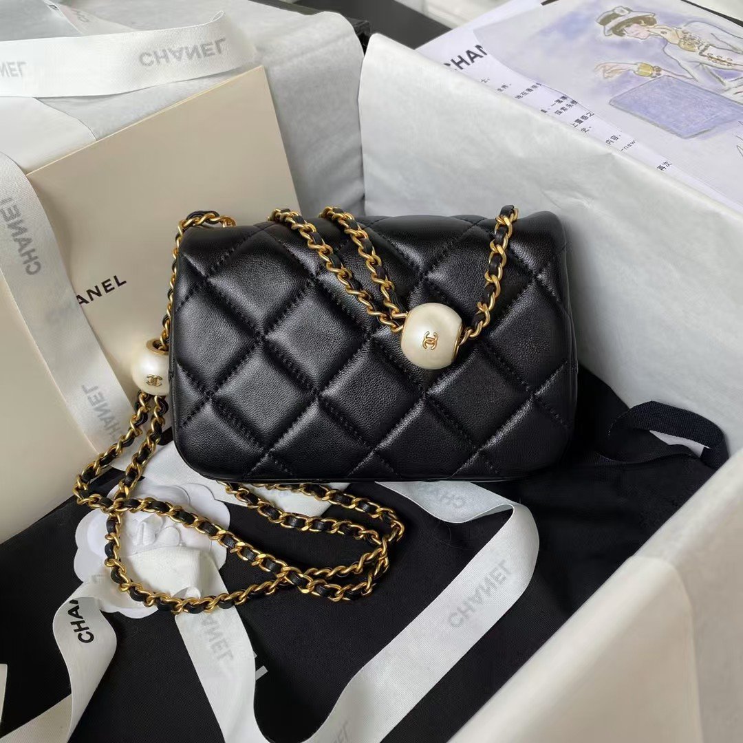 Chanel AS4868 Mini Flap Bag Pearl Lambskin Faux Pearl & Gold Metal Black