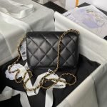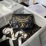 Chanel AS4986 Mini Flap bag Shiny Lambskin Imitation Pearls & Gold-Tone Metal Black