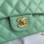 This medium classic double flap bag is crafted in green leather with light gold hardware, featuring the signature CC turnlock closure on the front flap, half-moon back pocket, adjustable interwoven light gold chain and green leather shoulder strap.