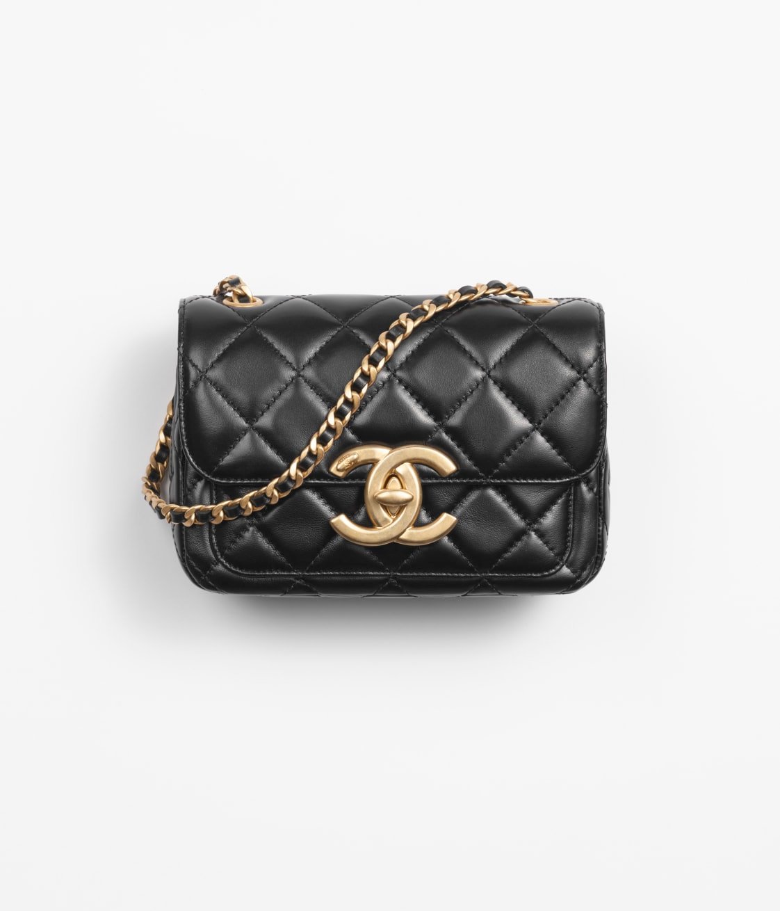 Introducing the CHANEL Mini Flap Bag in Shiny Lambskin – a chic and sophisticated take on a timeless classic. Adorned with a stunning quilted exterior and finished with the iconic CC turnlock, this exquisite bag will add a touch of luxury to any outfit. With a black quilted lambskin exterior, it also features a chain and leather interwoven sliding shoulder strap, making it an easy transition from day to night. The top flap closes with a CC turnlock and features two slip pockets for easy organization. With a front flap pocket adorned with a CC turnlock closure, this bag is both practical and stylish.