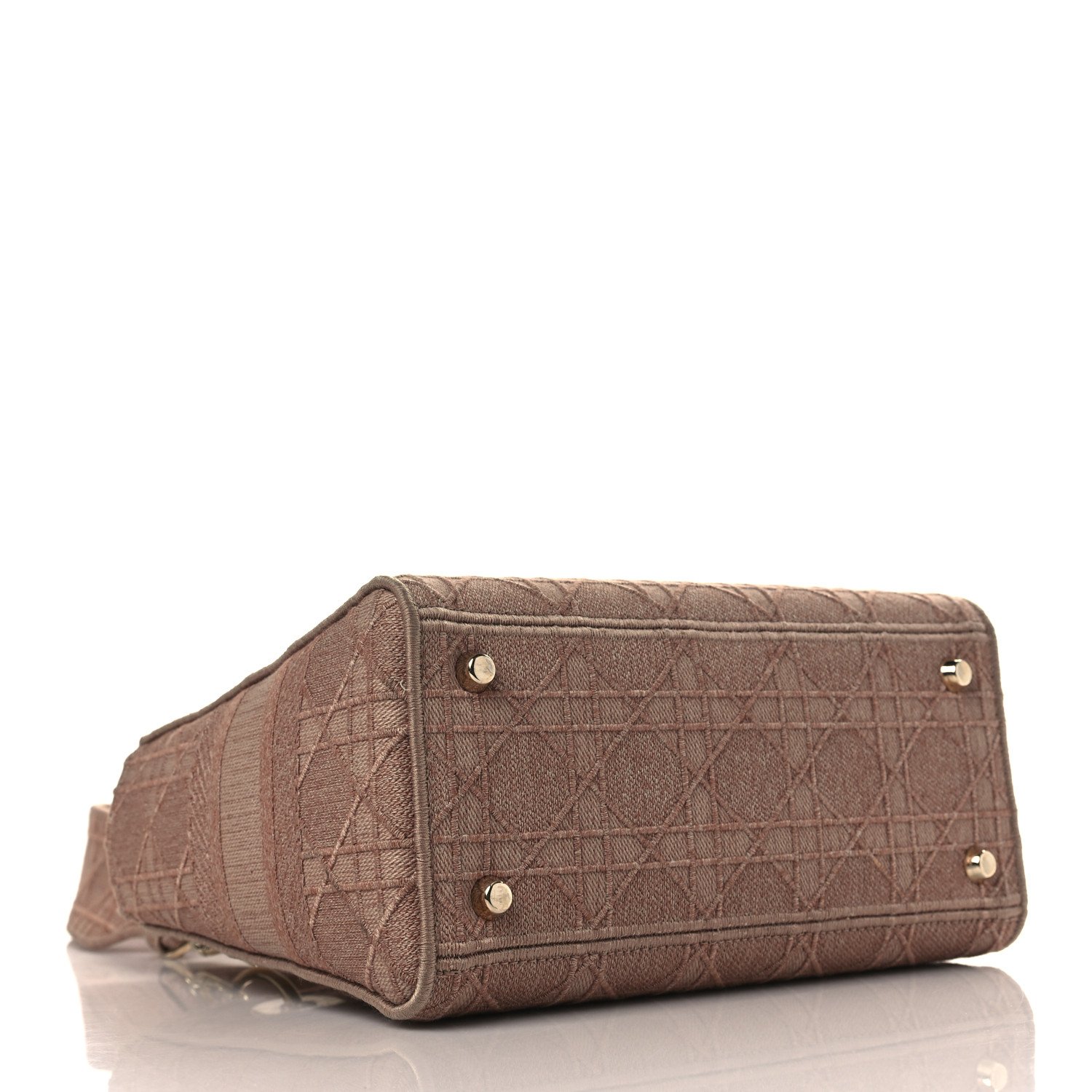 CHRISTIAN DIOR Canvas Embroidered Cannage Medium Lady D-Lite Pink