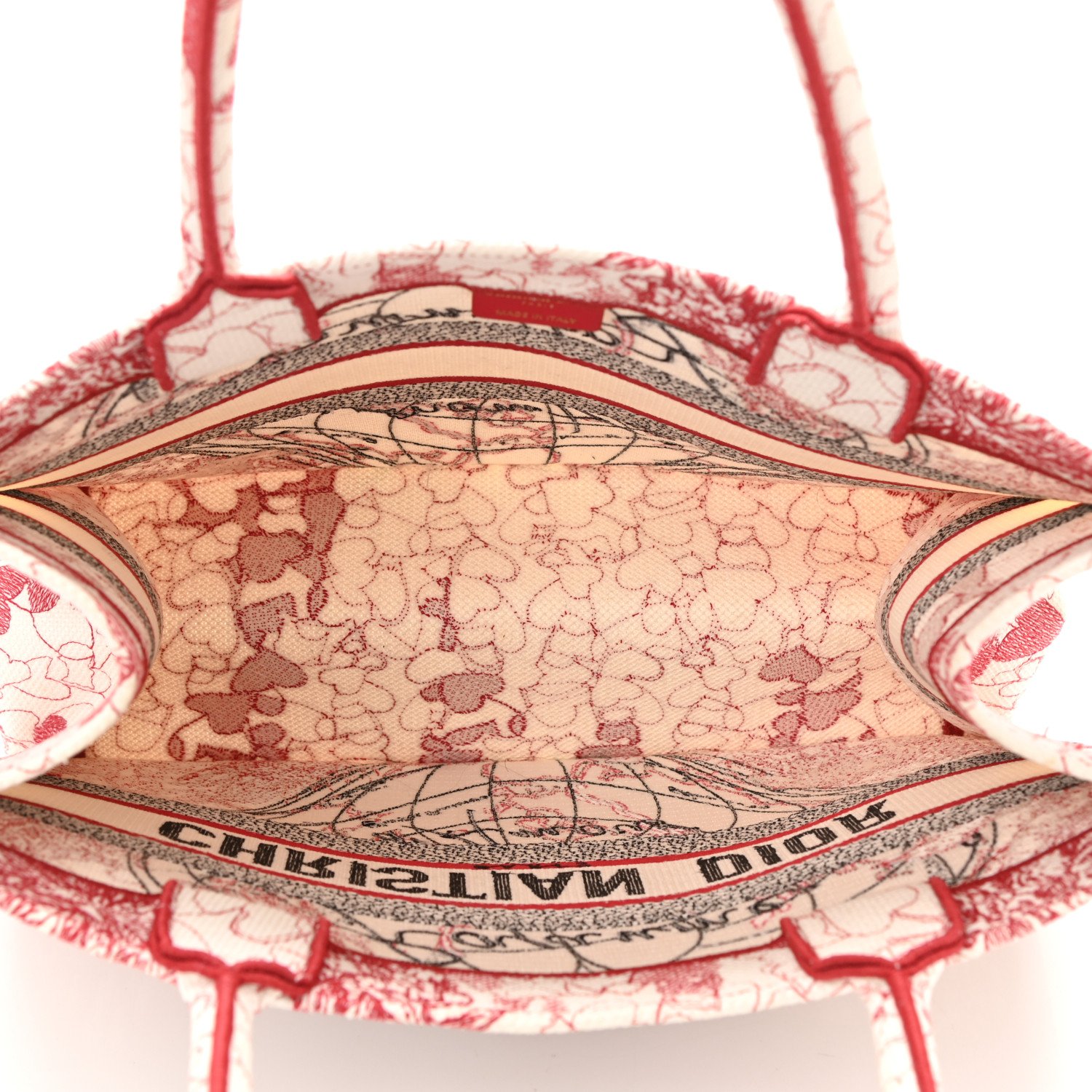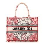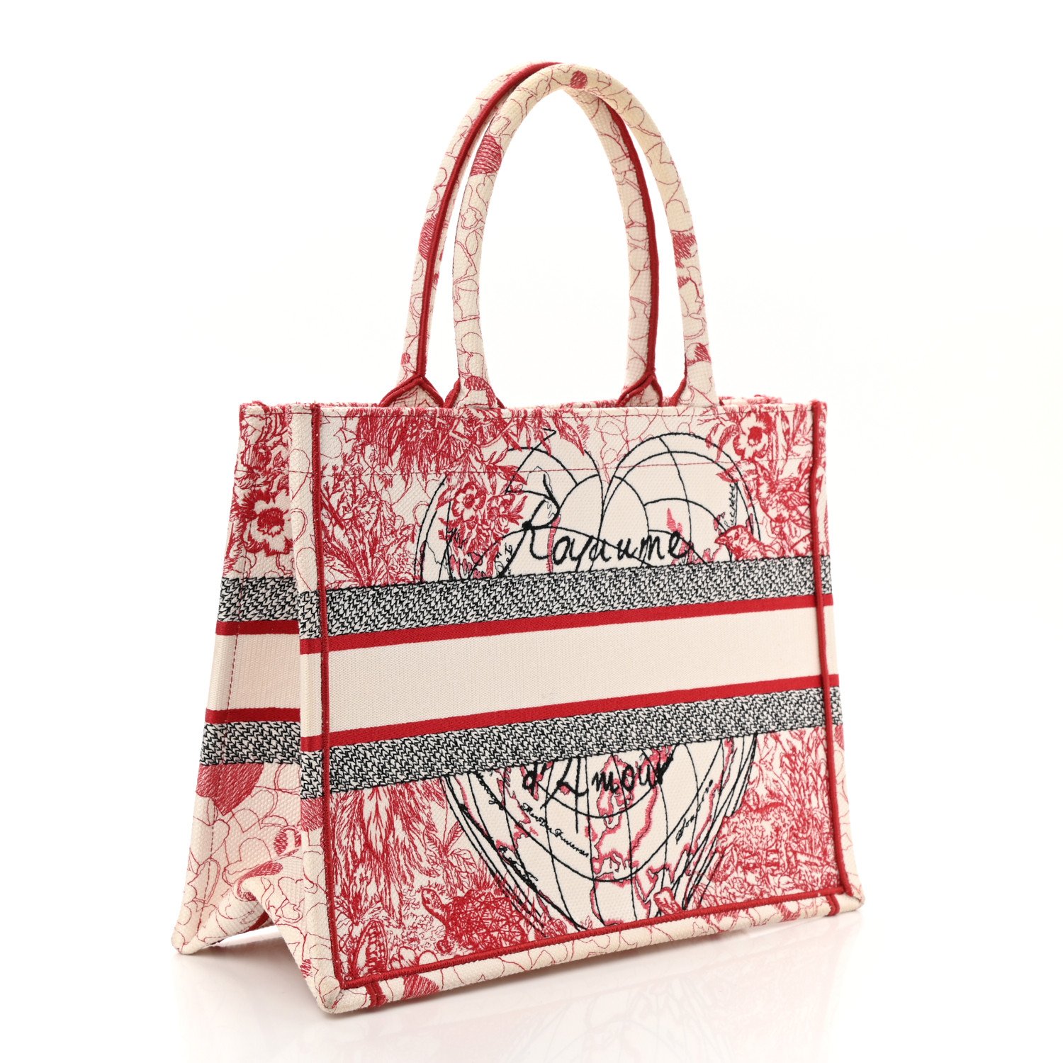 CHRISTIAN DIOR Canvas Embroidered Medium Dioramour D-Royaume Book Tote Red White