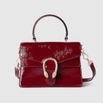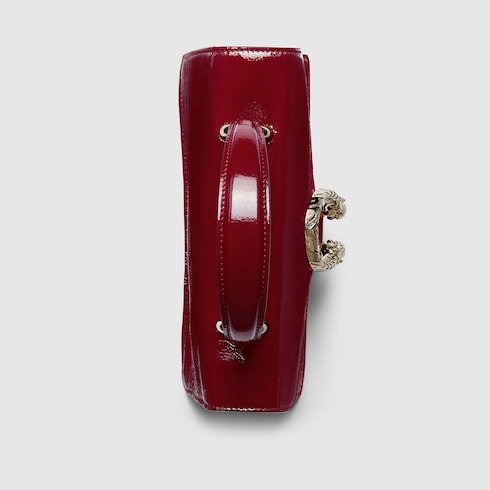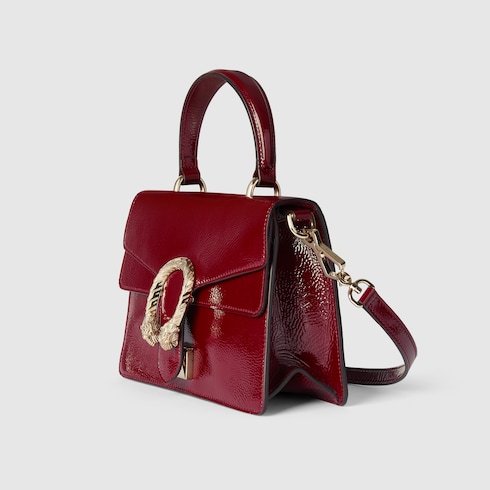 Gucci’s Creative Director Sabato de Sarno presents a small version of the signature Dionysus shoulder bag. Designed with a more contemporary look, this iteration in sleek Rosso Ancora patent leather features a tiger head closure with a flap and a sliding chain that can be adjusted to wear with the preferred length and style.