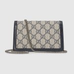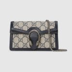 Mirroring the material’s historic origins, GG Supreme is introduced in a timeless mix of blue and beige for Gucci Love Parade. The canvas has come to the front of each collection decade after decade to become a hallmark of the House. Here, the classic palette defines this Dionysus super mini bag.