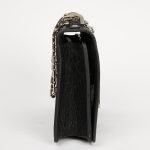 Beautiful Dior bag from the J’Adior collection. It is made of lambskin leather with a crumpled effect. The trimmings are in silvery metal. The links of the chain are all signed CDs and they can be worn single or double. It is lined in black suede, with several pockets including one with a flap. Closing by a magnetic flap. It is signed “Christian Dior Paris”. The metal plate on the front of the bag is the signature of the collection. It has never been used. It’s made in Italy, with its serial number in one of the pockets. Its dimensions are length 25 cm x height 17 cm x depth 5 cm. At its shortest, its chain measures 47 cm, and at its longest 80 cm. It will be delivered with its dustbag and Dior box.