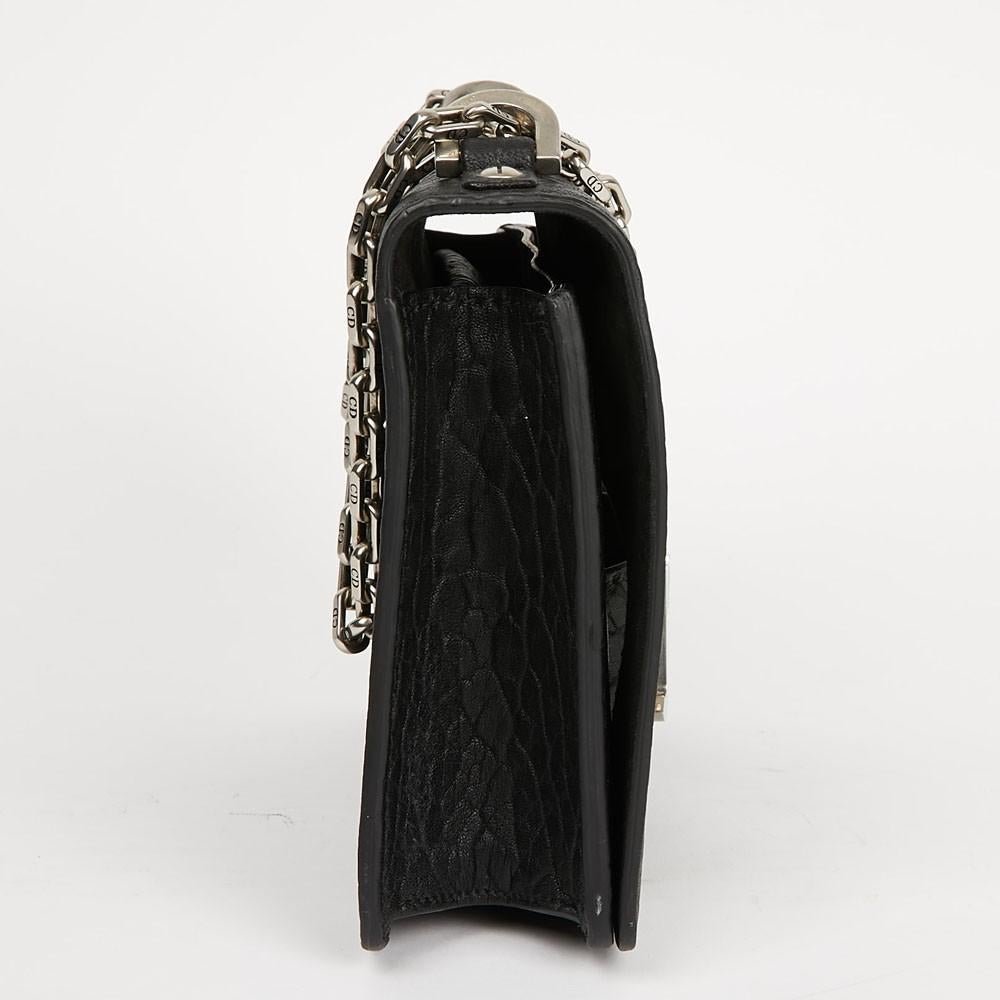 Dior Black Textured Leather Small J’adior Flap Shoulder Bag