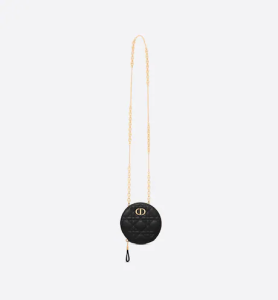 DIOR CARO ROUND POUCH WITH CHAIN Black Supple Cannage Calfskin