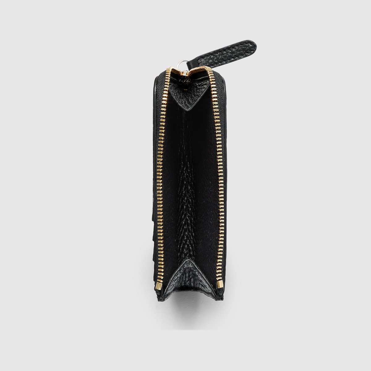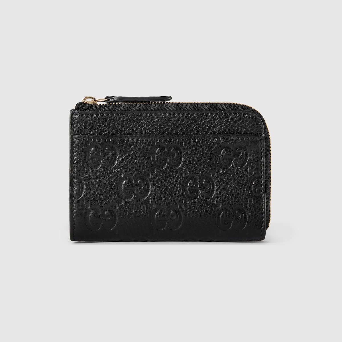 The GG Emblem collection reinterprets signature motifs through creativity and innovative functions , and is envisioned to be cherished for years to come. Introduced in the latest line of small accessories, this zip card case is crafted from emblematic GG grainy leather. The design features a coin compartment on the inside and card slots on the outside.