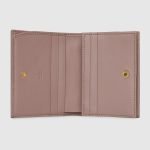 The GG Marmont collection is defined by the emblematic Double G hardware—a contemporary take on a Gucci archival belt buckle from the ’70s that has become a hallmark of the House. The card case wallet is crafted in soft matelassé leather that coordinates with bags of the collection.
