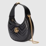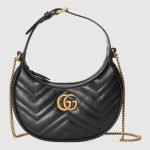 With a crescent silhouette and textured black leather, this mini bag has a defined retro feel. Each collection is a journey through different decades and eras, combining vintage elements with archival codes or contemporary details to create new designs that exist outside of space and time. The petite accessory reflects this fascination with the past, a concept that runs throughout the world of GG Marmont.
