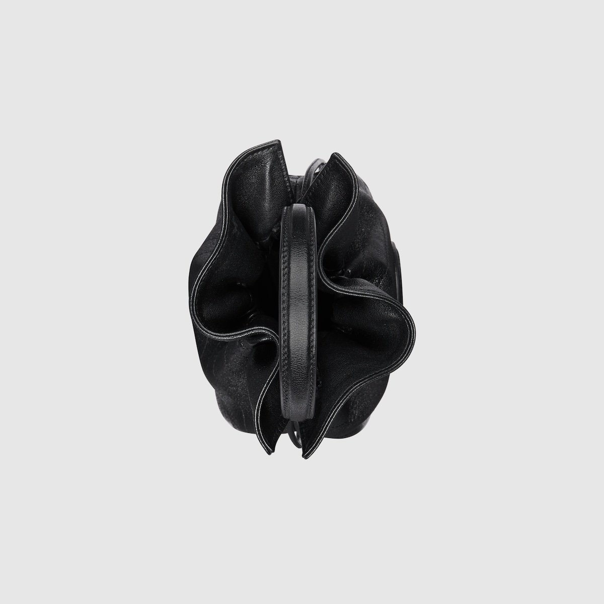 A bold motif of the House, the Gucci Blondie continues to exude subtle style, thanks to its tonal leather appearance. Formed from a rounded geometric version of the Interlocking G, the line exemplifies Gucci’s contemporary design. The logo detail defines this mini bucket bag in black leather with tassel details.