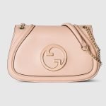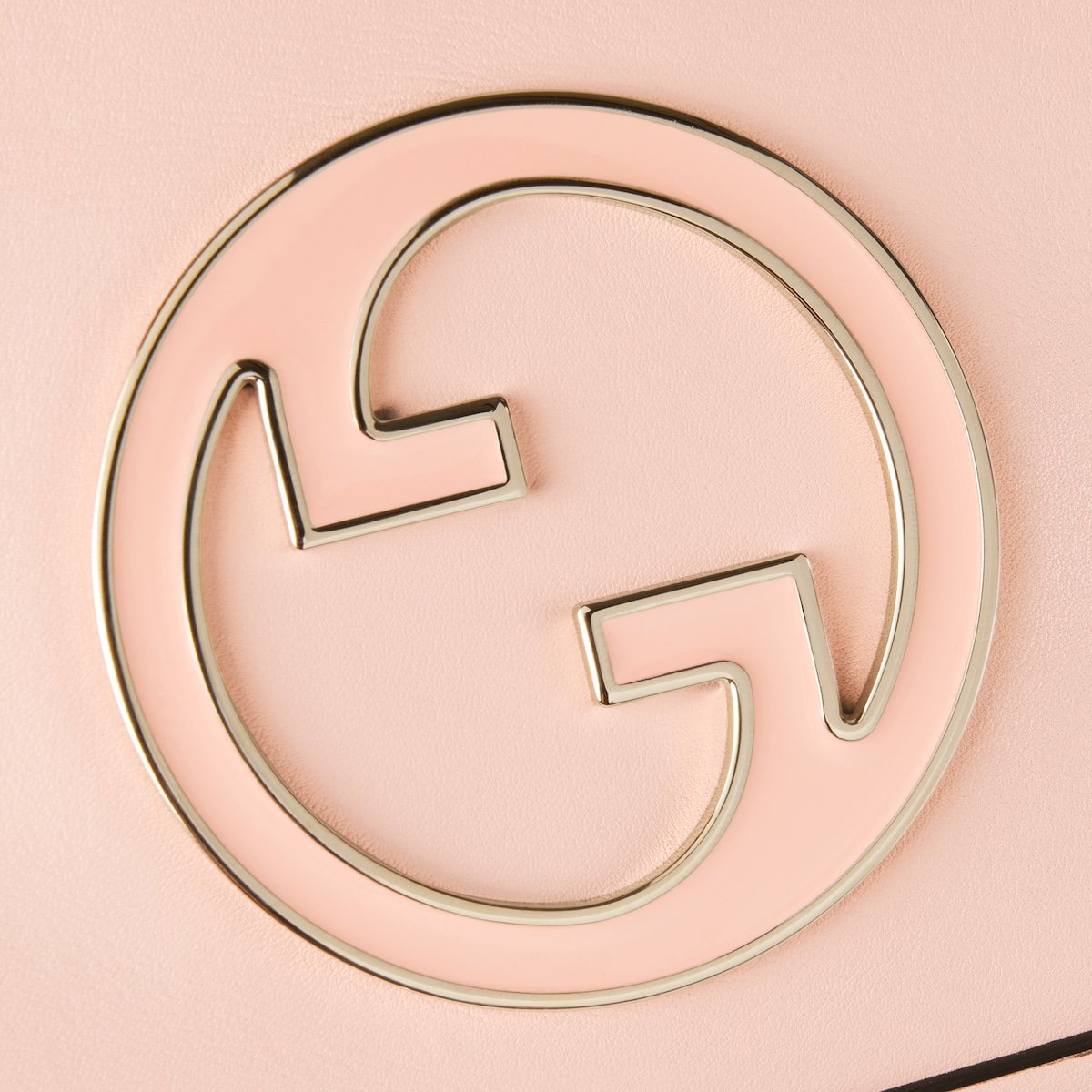 The new Gucci Blondie bag, whose distinctive logo first appeared in the House’s collections in the early 1970s, weaves together past and present in a fusion of nostalgia and modernity. This small shoulder bag is crafted from light pink leather, featuring the House’s round symbol in enamel. The gold-toned chain and leather strap can be worn on the shoulder or crossbody.