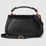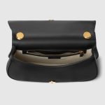 The new Gucci Blondie bag, whose distinctive logo first appeared in the House’s collections in the early 1970s, weaves together past and present in a fusion of nostalgia and modernity. This small top handle bag with a detachable and adjustable leather shoulder strap is crafted from black smooth leather.