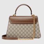 The Gucci Horsebit 1955 is introduced in beige and ebony GG Supreme canvas and a medium size. The collection unifies details first introduced on the original bag that inspired the line from over six decades ago with a modern spirit, highlighting the Horsebit. Part of Gucci’s genetic code, the double ring and bar design has been established as one of the most distinctive elements among the House symbols borrowed from the equestrian world. A brown leather trim completes the style with an elevated feel.