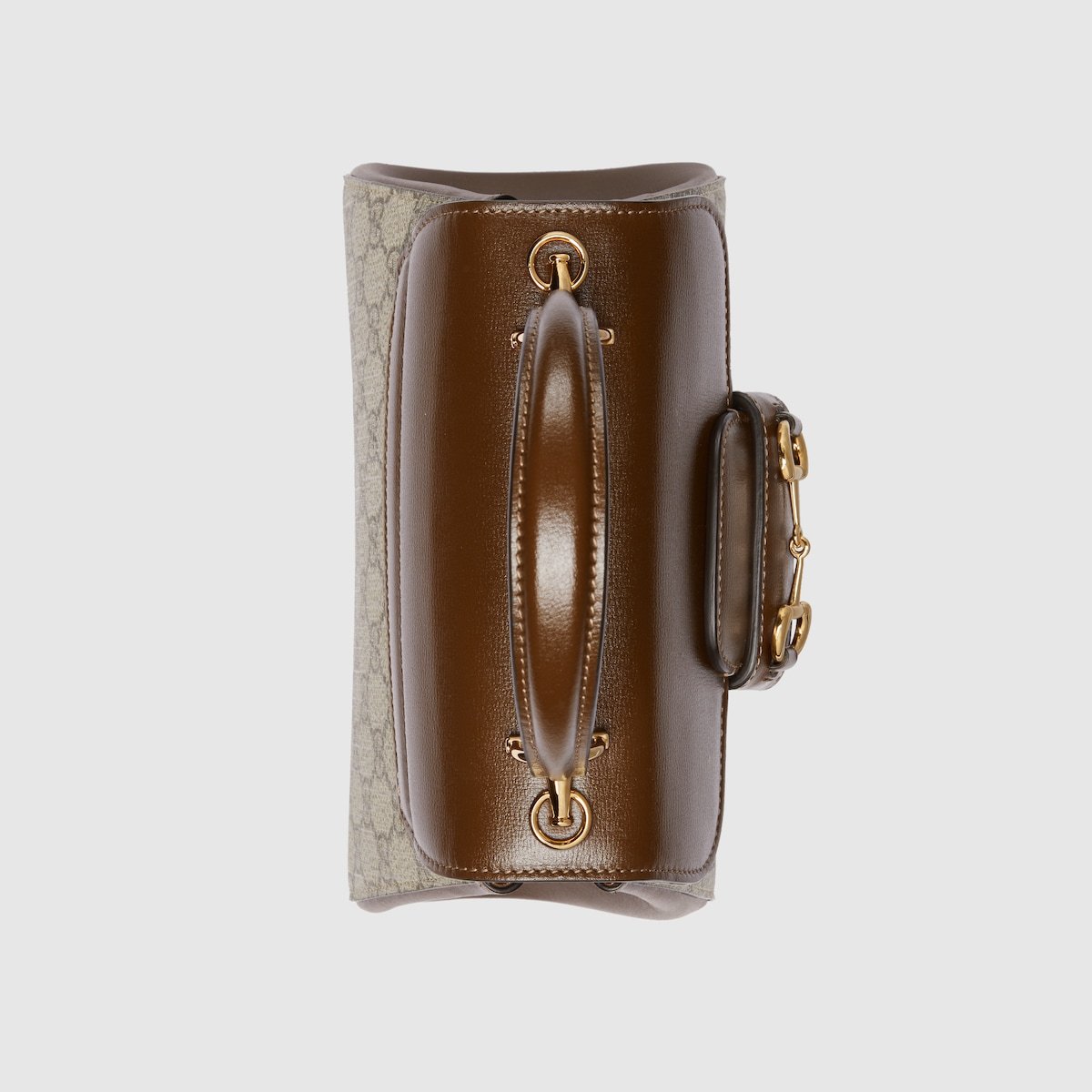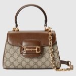 The Gucci Horsebit 1955 is presented as a top handle bag in light brown leather. The collection unifies details first introduced on the original bag that inspired the line from over six decades ago with a modern spirit, highlighting the Horsebit. Part of Gucci’s genetic code, the double ring and bar design has been established as one of the most distinctive elements among the House symbols borrowed from the equestrian world.