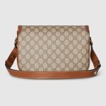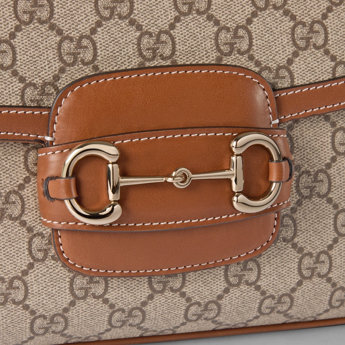 The Gucci Horsebit 1955 continues its equestrian-inspired design with the double ring and bar hardware, blending light gold-toned details and GG Monogram coated fabric, with a soft and sophisticated feel, on this shoulder bag.