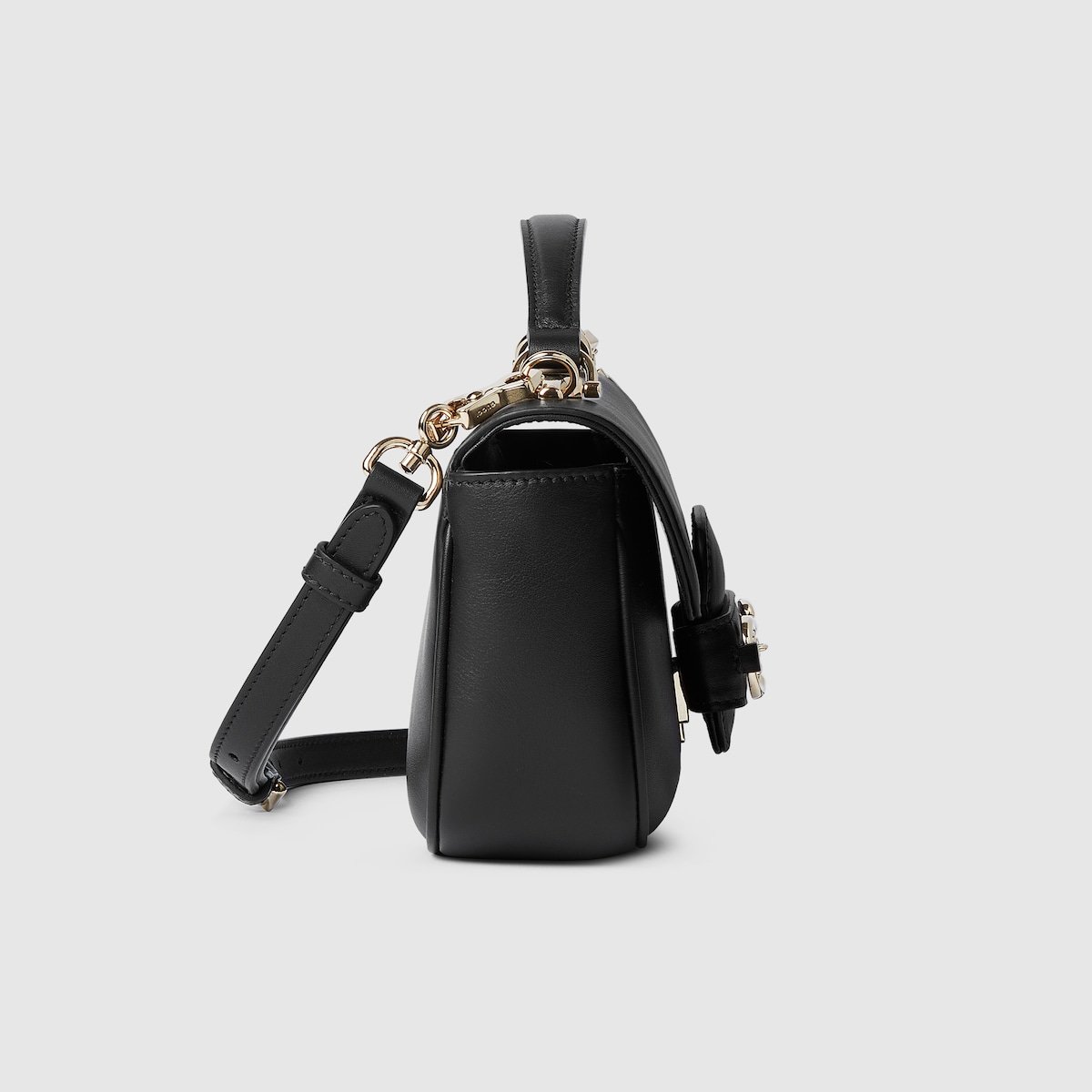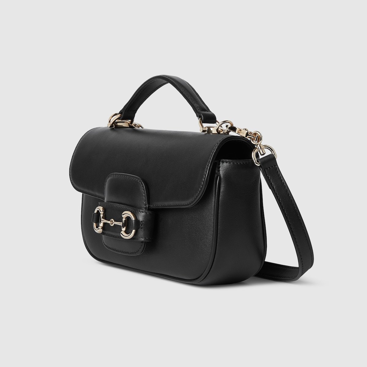 The Gucci Horsebit 1955 Soft continues its equestrian-inspired design with the double ring and bar hardware, blending light gold-toned details and soft leather on this small top handle bag, which can also be worn on the shoulder or crossbody.
